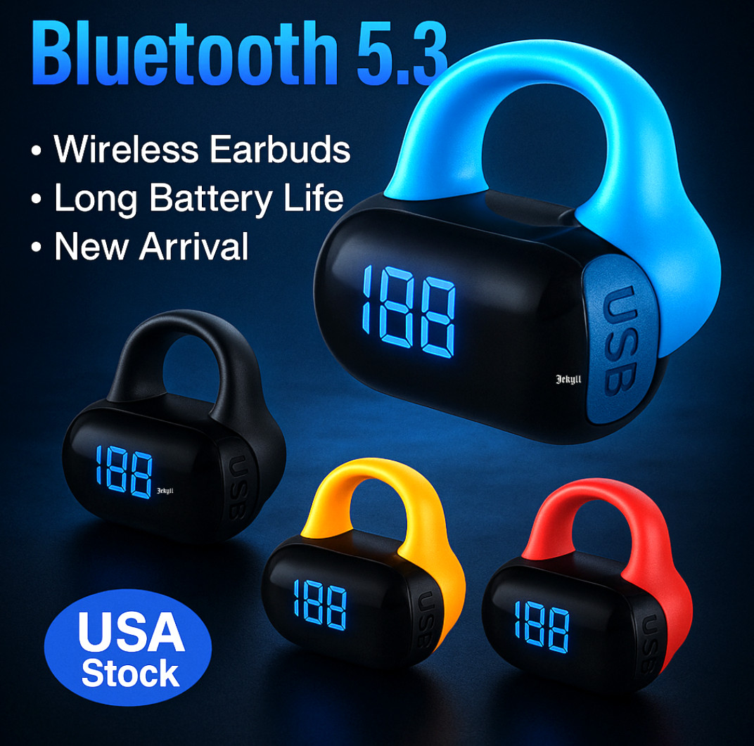 Bluetooth 5.3 Wireless Earbuds Ear Clip Bone Conduction Headphones Sport Headset