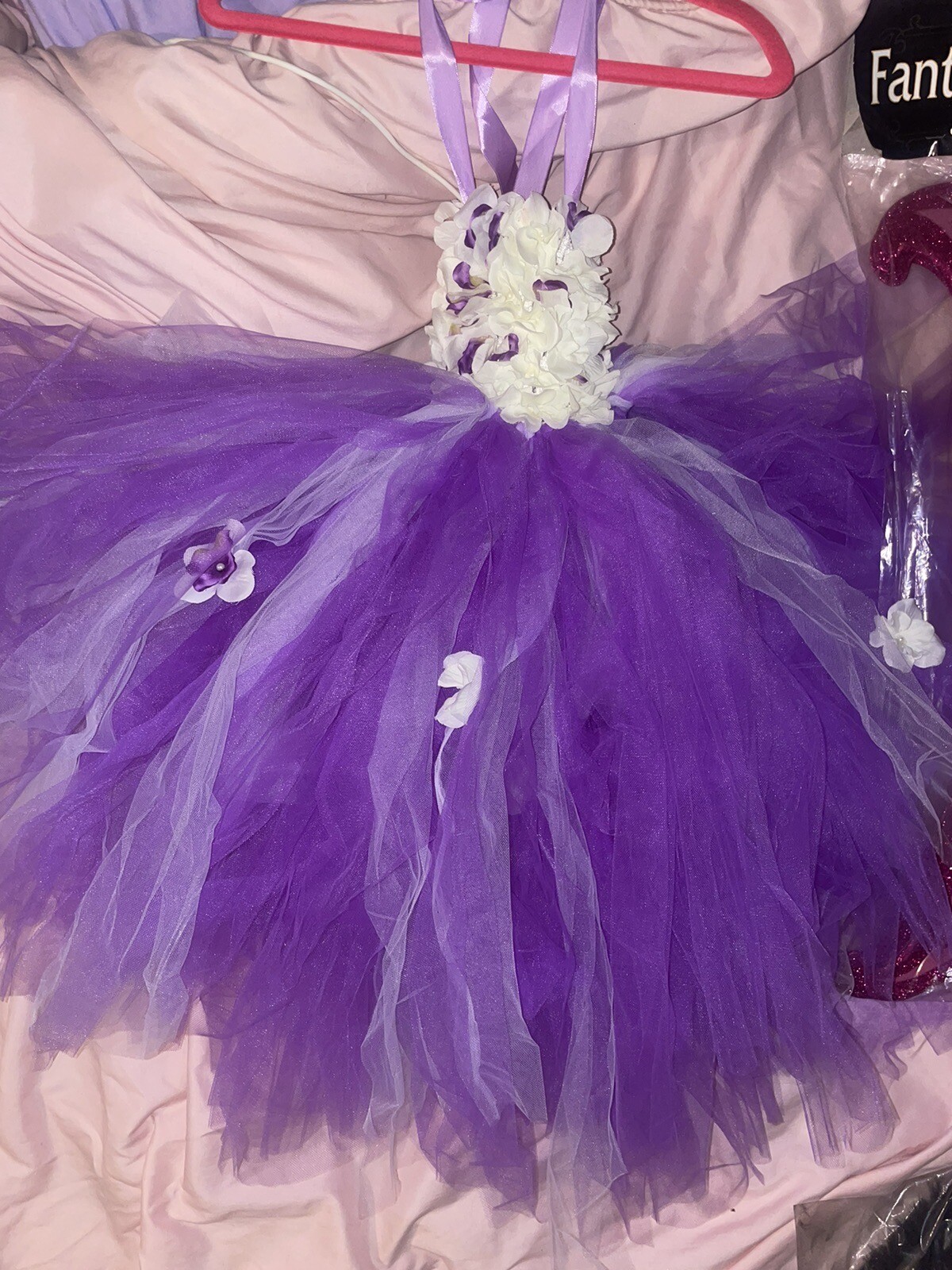 как выглядит Girl s Bebe Oh La La Purple FAIRY Tutu Dress With Flowers Wings Size S/ M фото