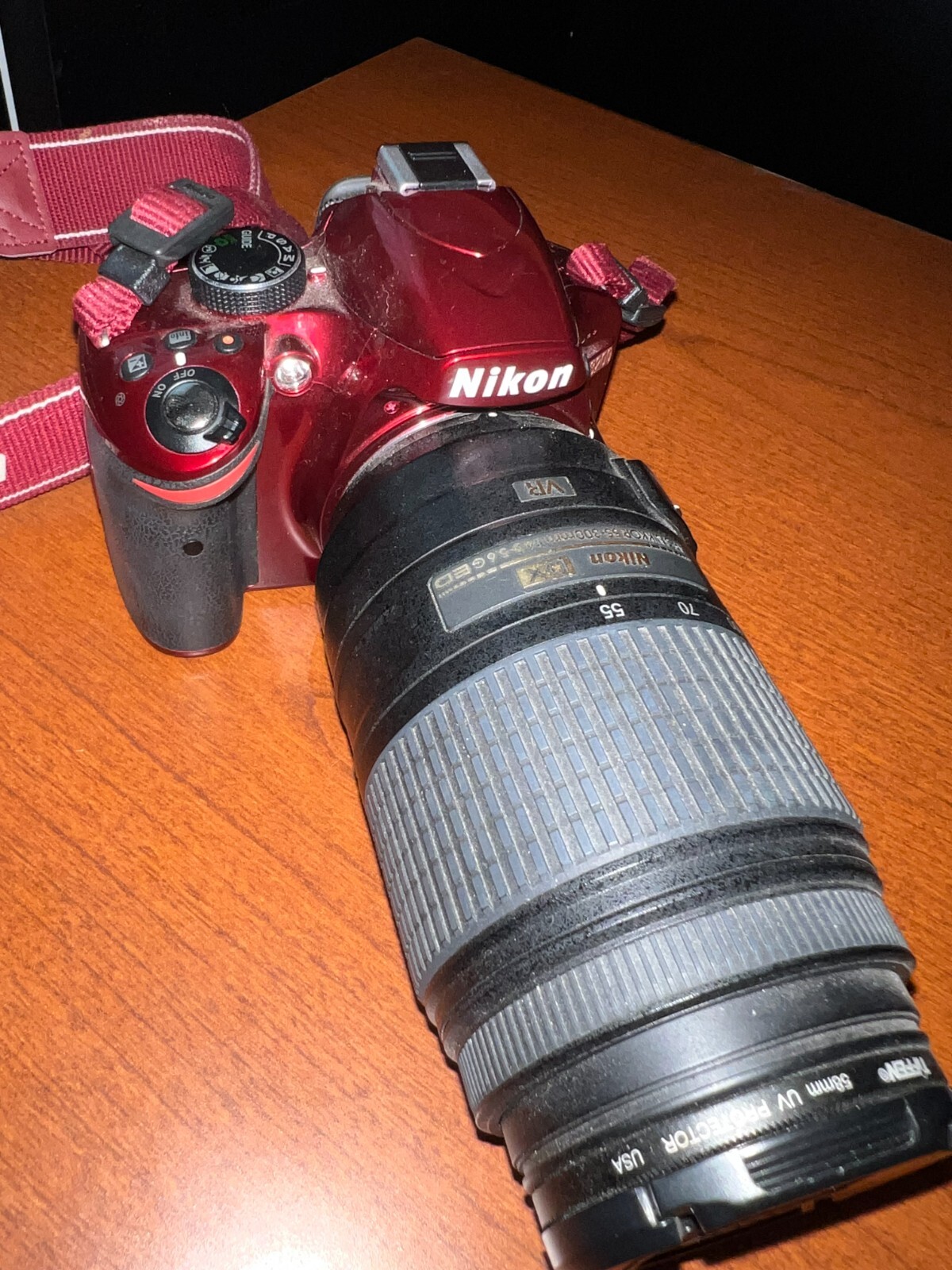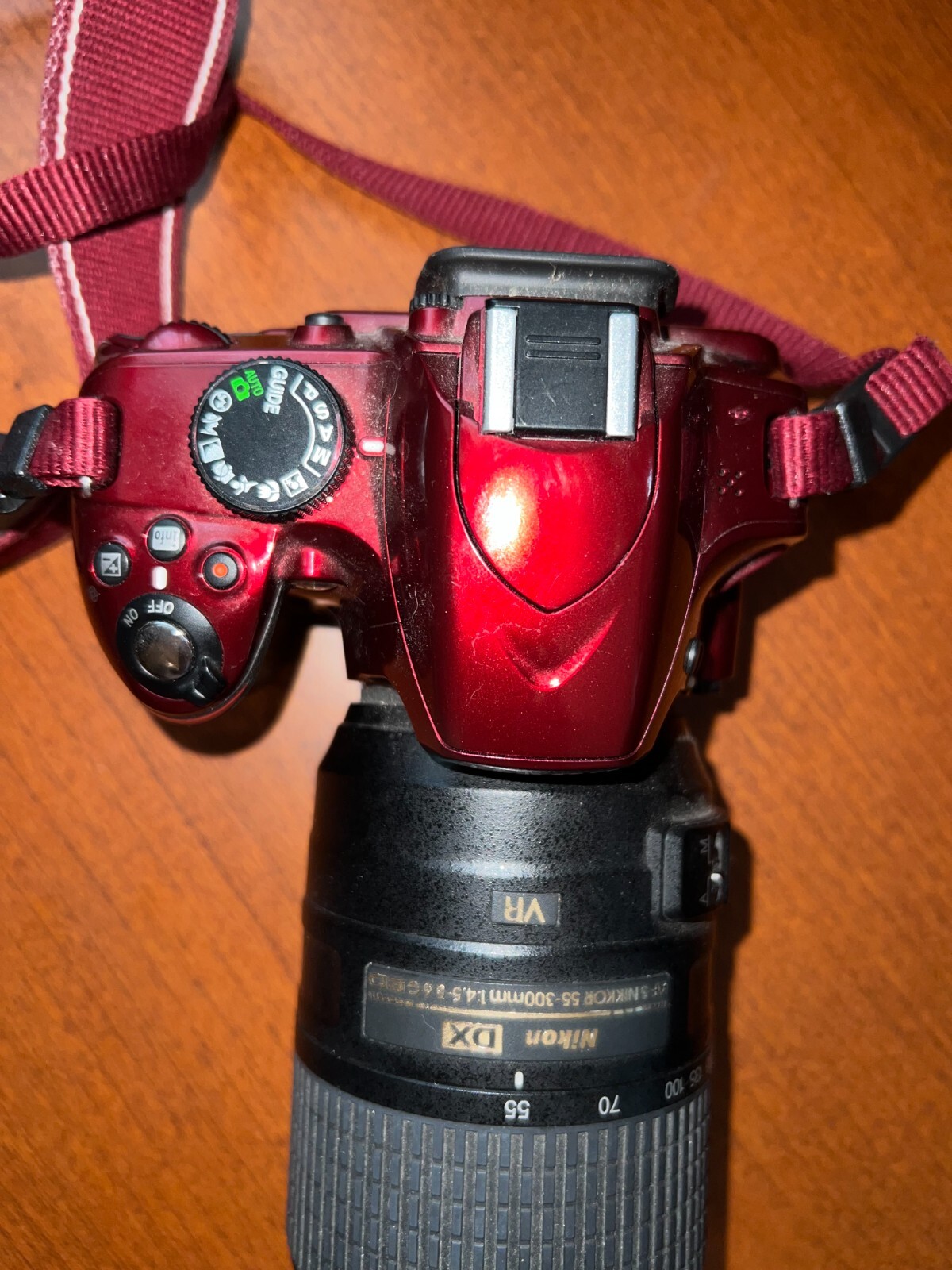как выглядит Nikon Red D3200 24.2 MP Digital SLR Camera W/ NIKKOR 55-300mm Lens фото