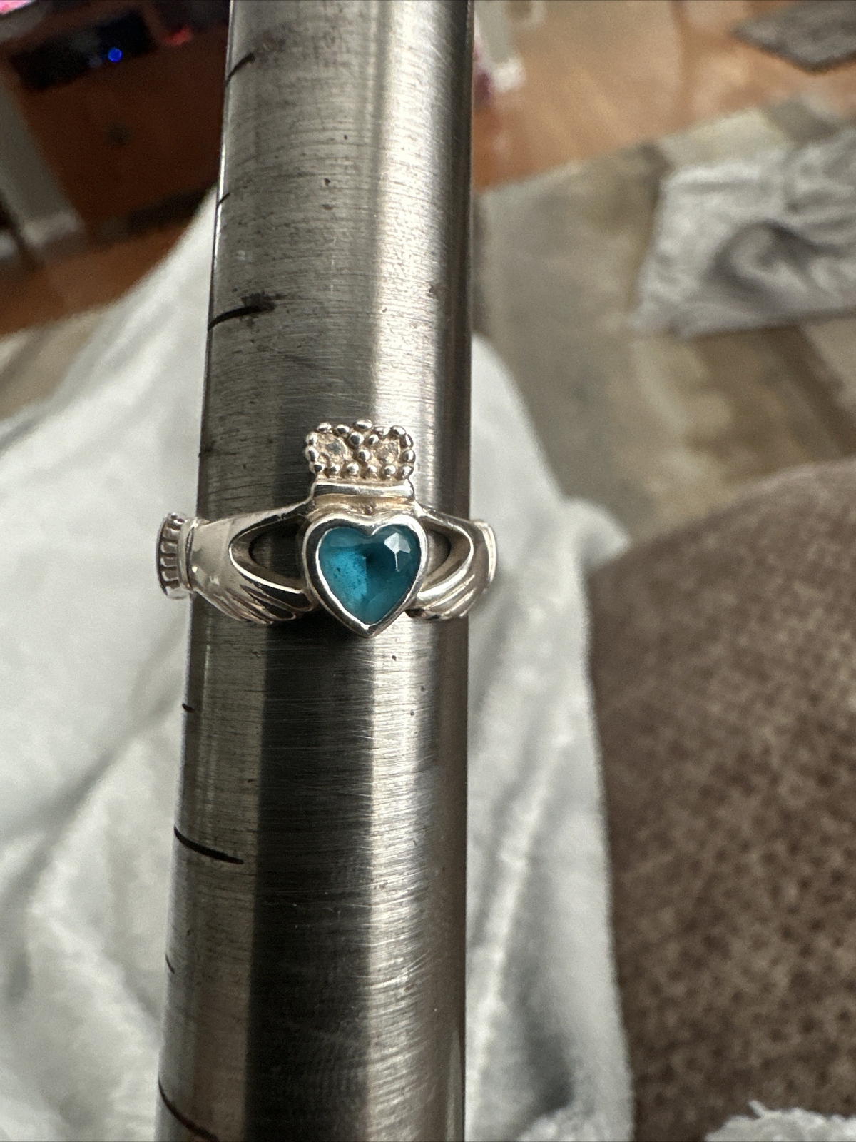 как выглядит Size 7 Sterling 925 Silver Ring Blue Heart Stone фото