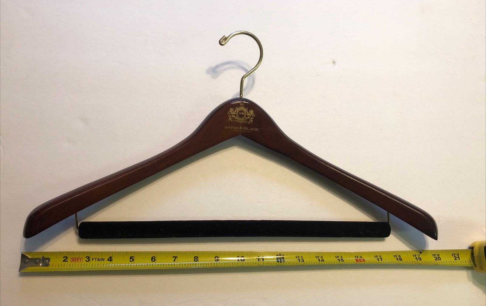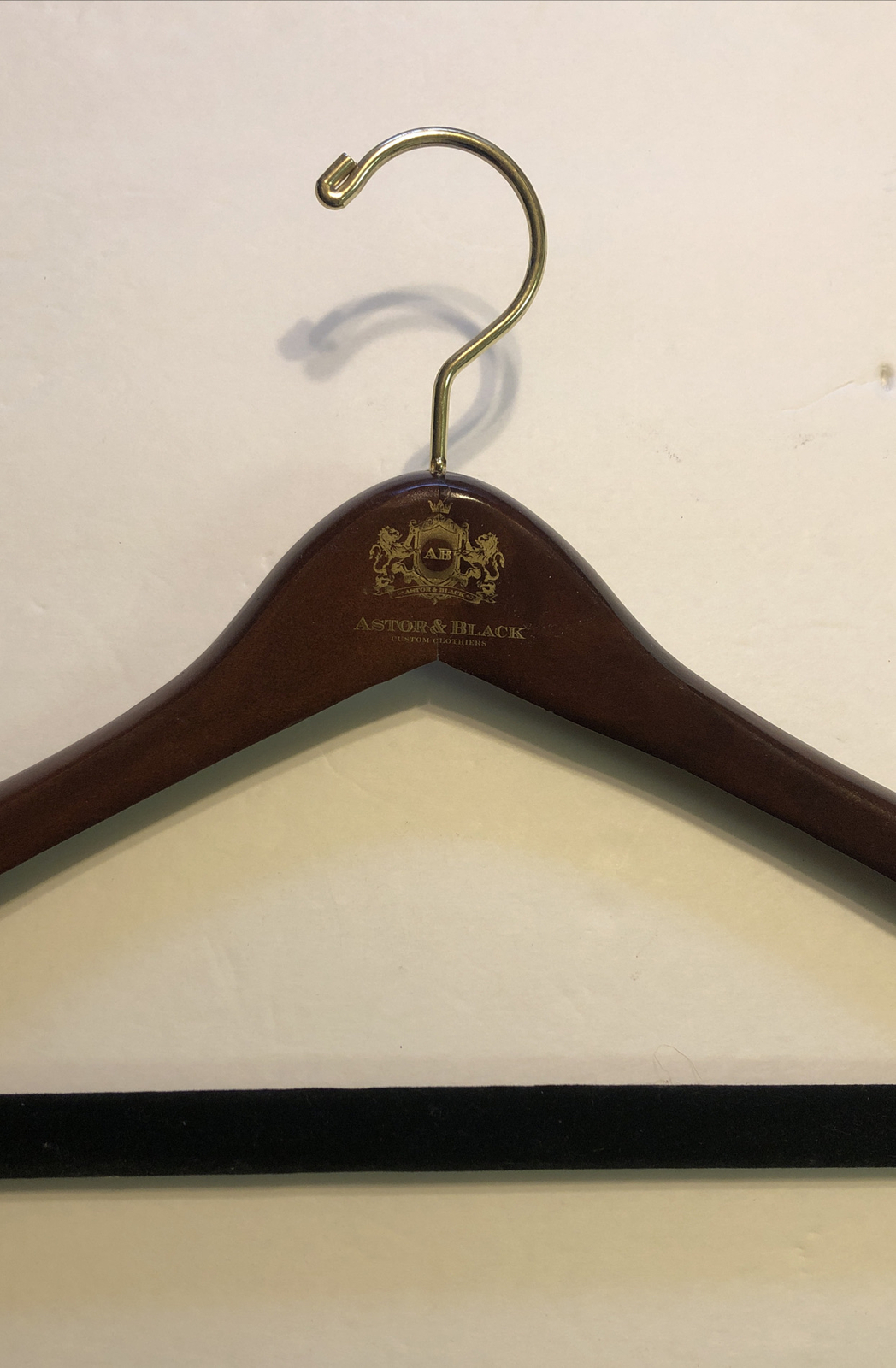 ASTOR BLACK CUSTOM CLOTHIERS Suit Jacket Pants Hanger FELT BAR, Brass Hook