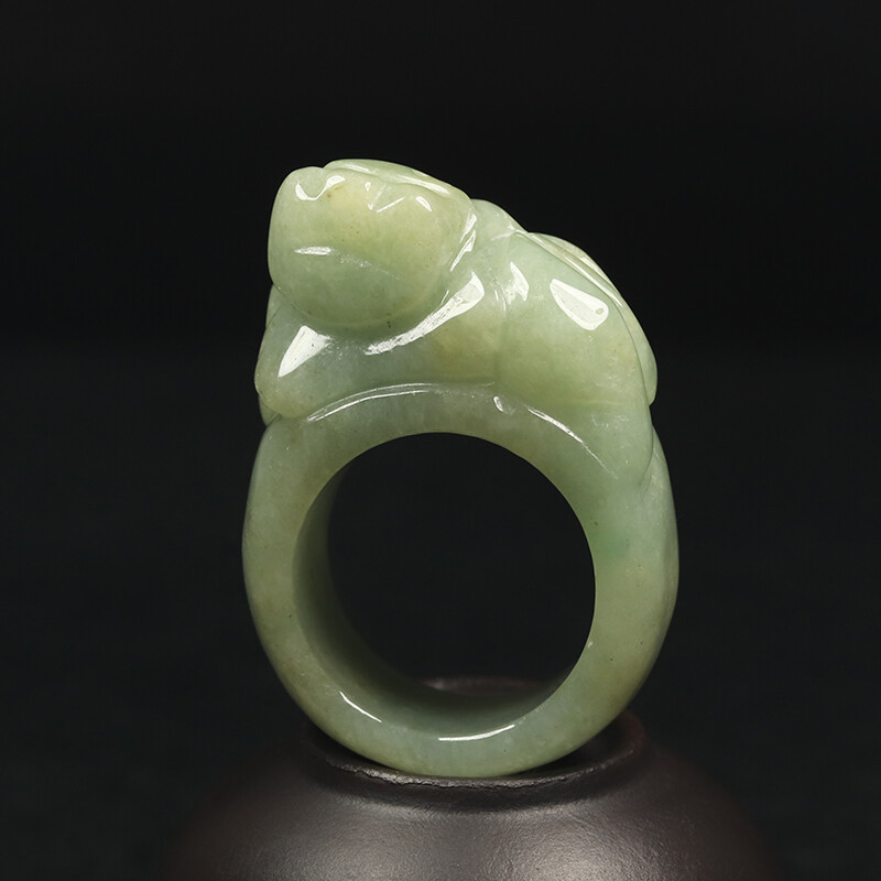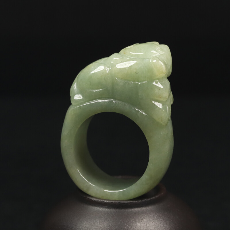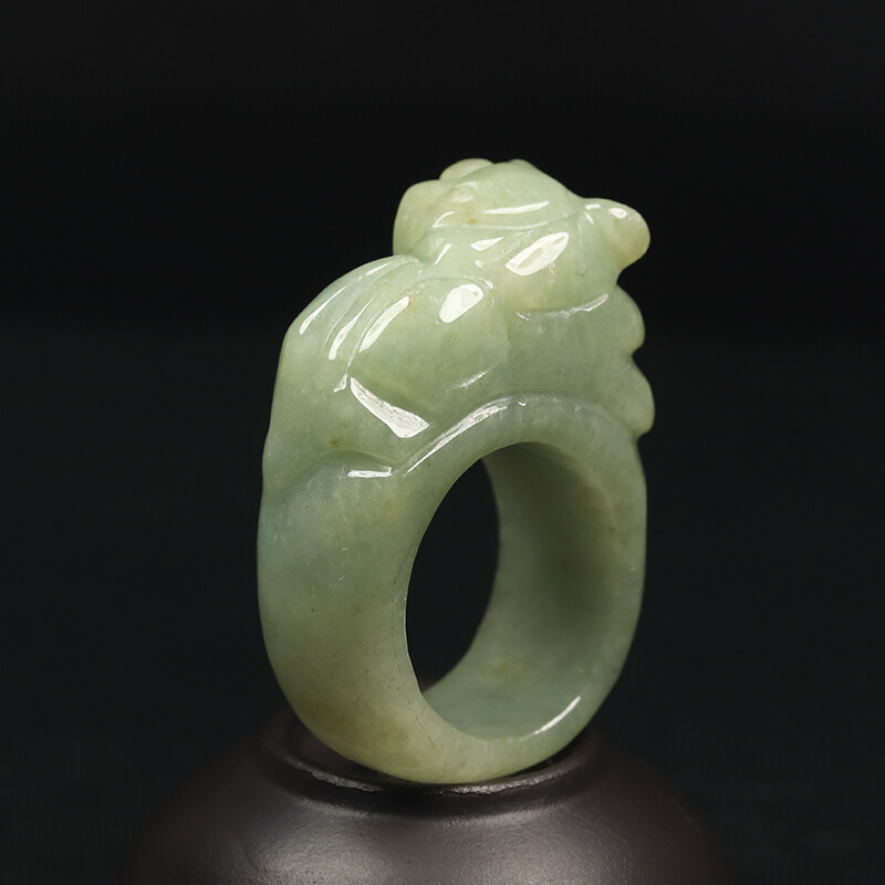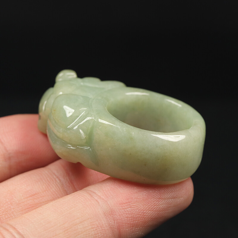 как выглядит Size 11.5 Certified Grade A 100 Natural Green Jadeite Jade Ring Pixiu 14777 фото