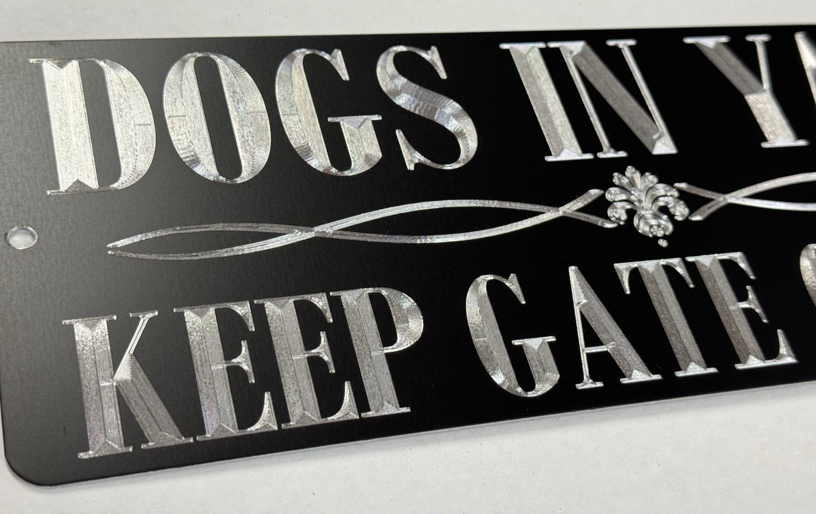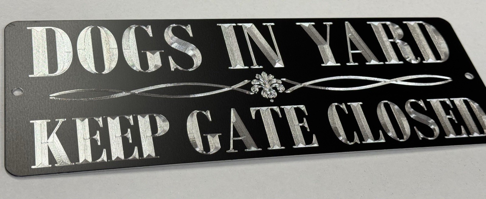 Engraved Keep Gate Closed Dogs In Yard Diamond Etched Metal 11x4 Dog Sign