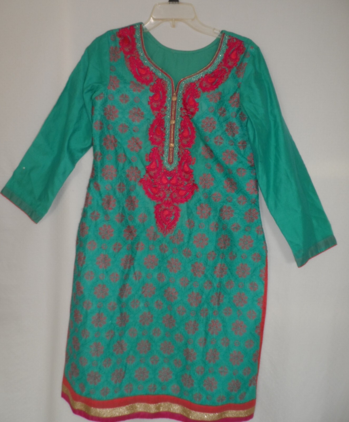 как выглядит Formal Beautiful Green Embroiderd Cotton Kameez Kurti Kurta Tunic Woman Size M L фото