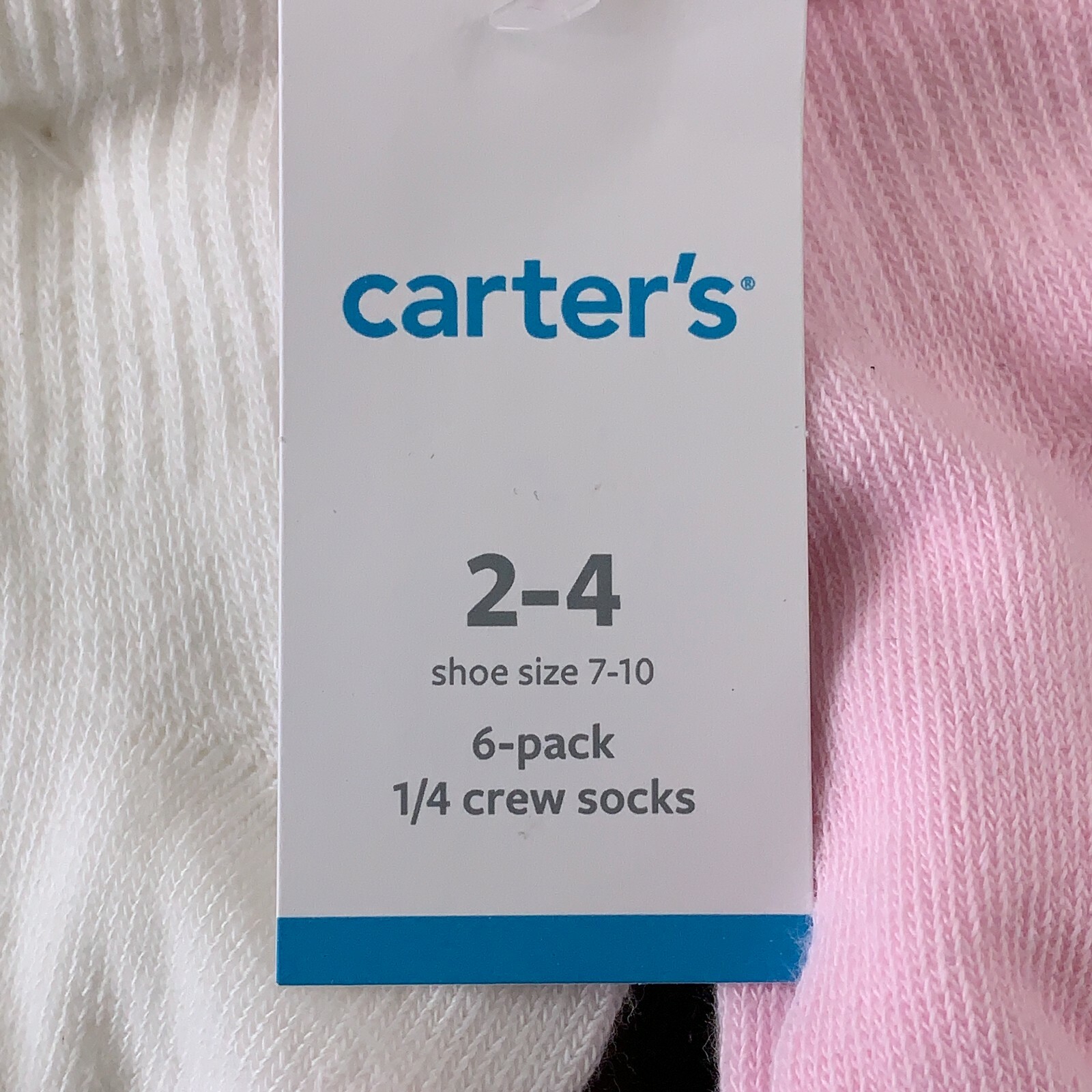 Carter's Toddler Size 2-4 Shoe Size 7-10 Colorful 6-Pack 1/4 Crew Socks NWT