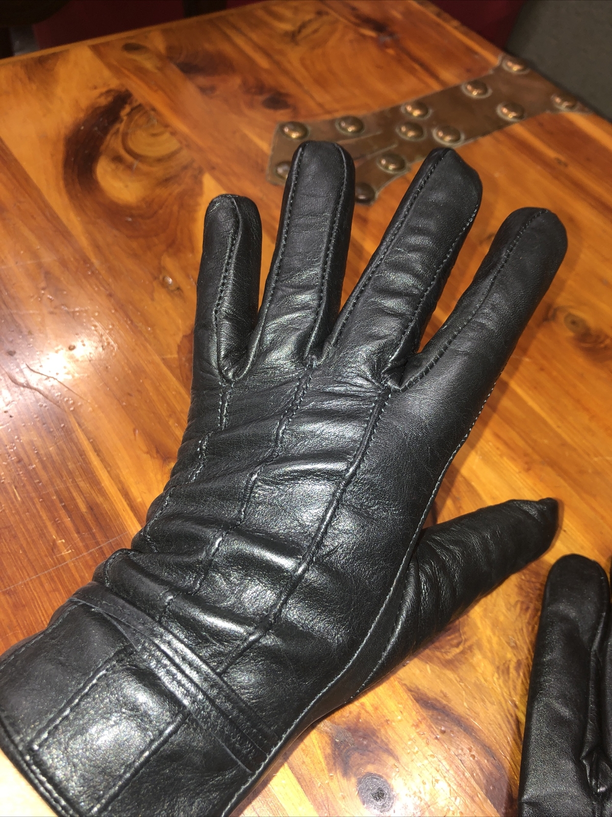 как выглядит Vintage Black Leather Insulate Gloves S фото