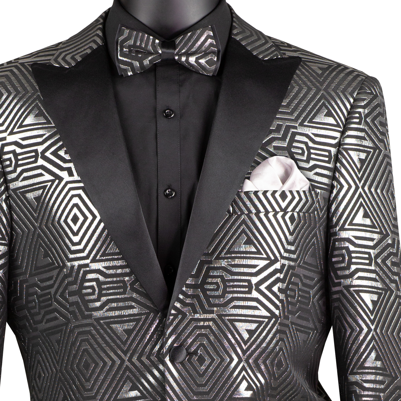 VINCI Men's Silver Metallic Geometric Jacquard Modern Fit Tuxedo Jacket - NEW