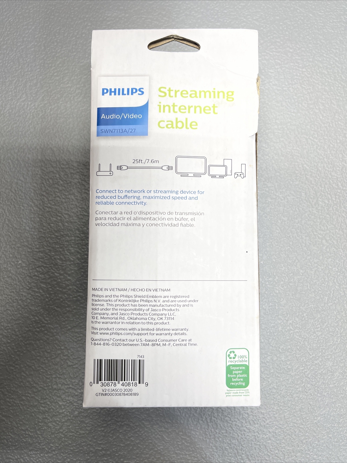 Philips Audio Video Streaming Internet Cable 25 Ft Long Cat5e Network 100 Mbps