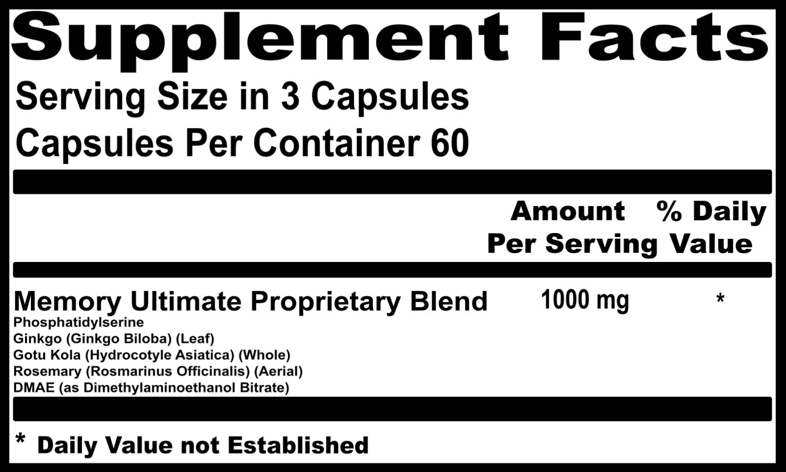 Active Ingredients: Phosphatidylserine, Gingko ( Gingko Biloba Leaf), Gotu Kola ( hydrocotyle Asiatica Whole ), Rosemary ( Rosmarinus Officinalis Aerial ), DMAE ( as Dimethylminoethanol Bitrate)