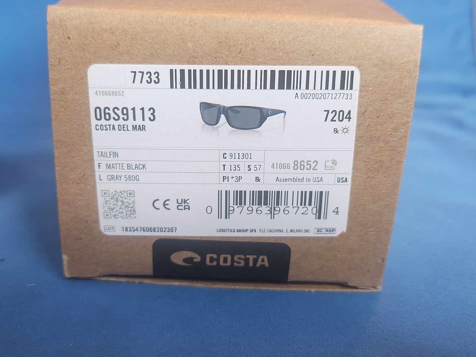 New Costa Del Mar Sunglasses Tailfin Matte Black Gray 580G 06S9113