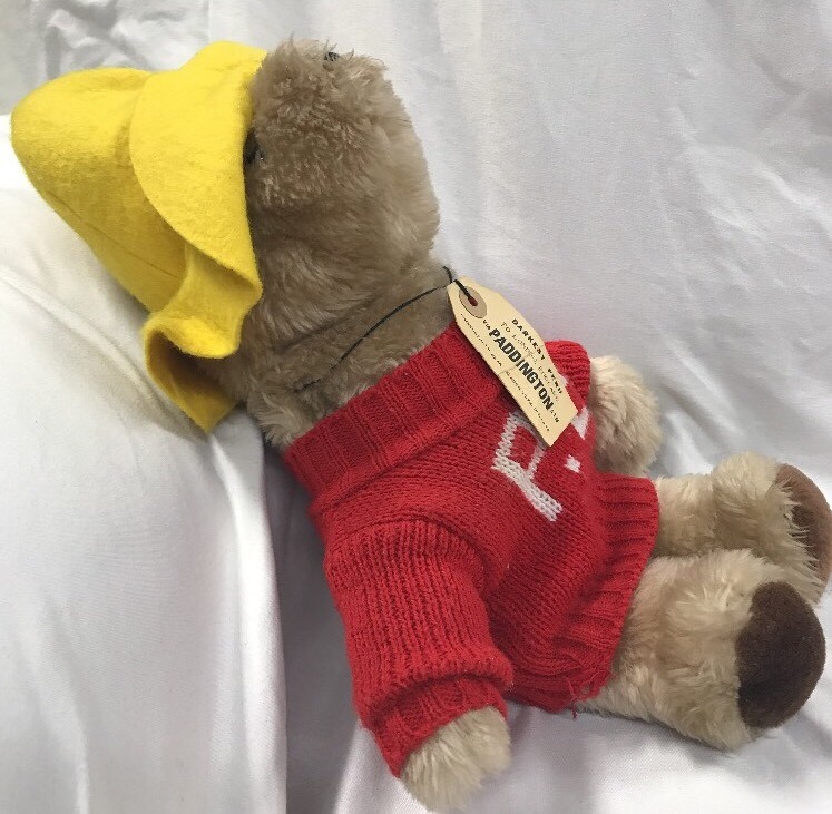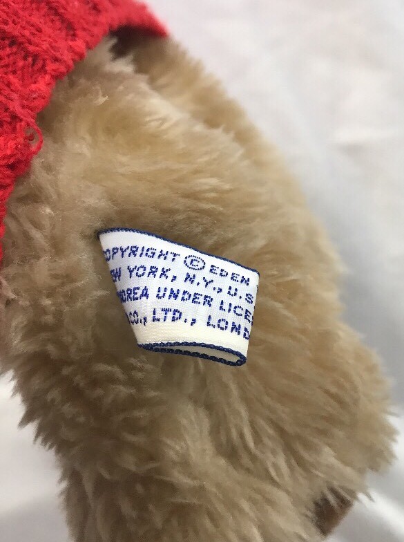 как выглядит Paddington Bear Plush 1981 Eden Toys Stuffed Animal P.B. Red Sweater Hat Vtg 16 фото