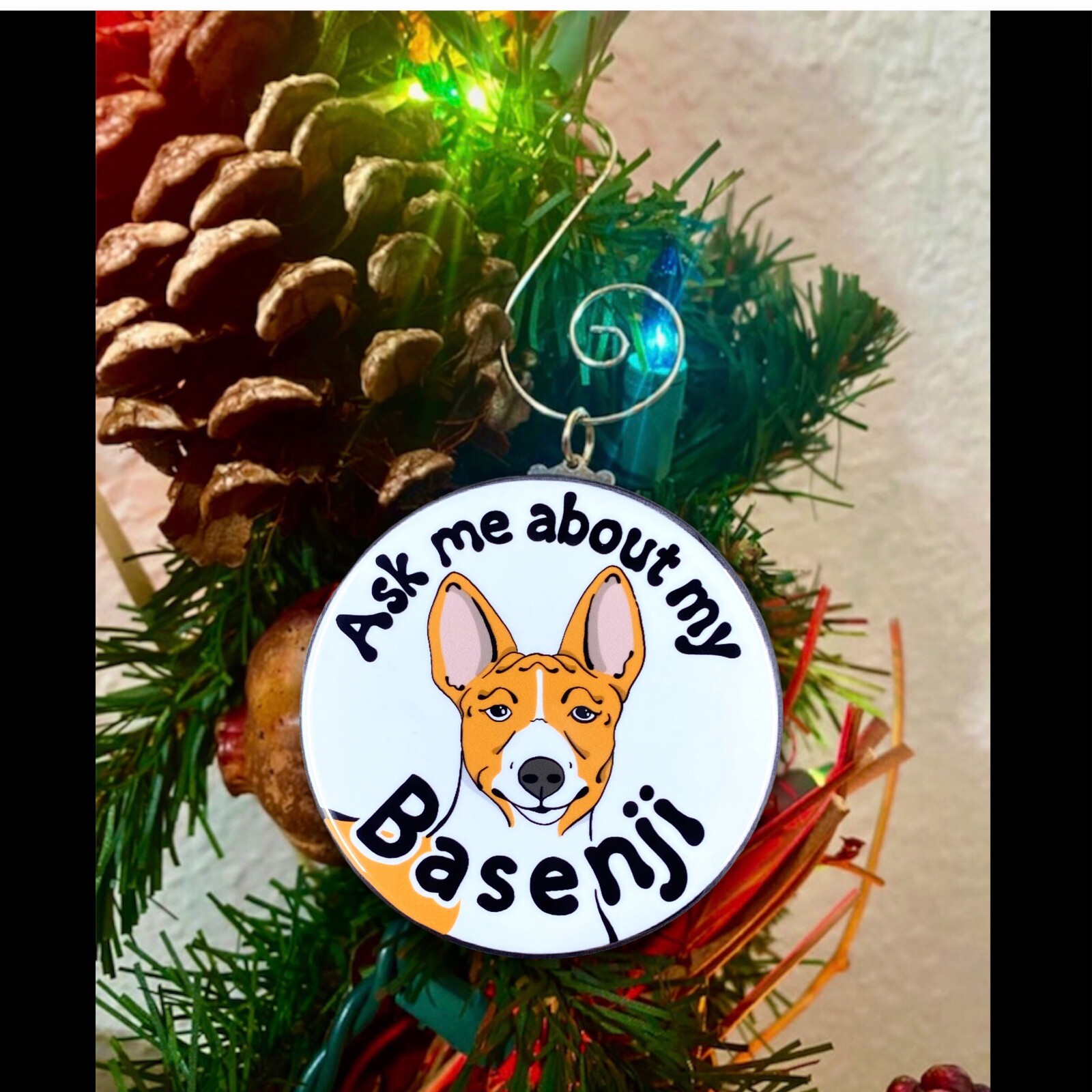 • Basenji Mini Ornament Dog Holiday Decor Handmade Gift 2.25" - Red White