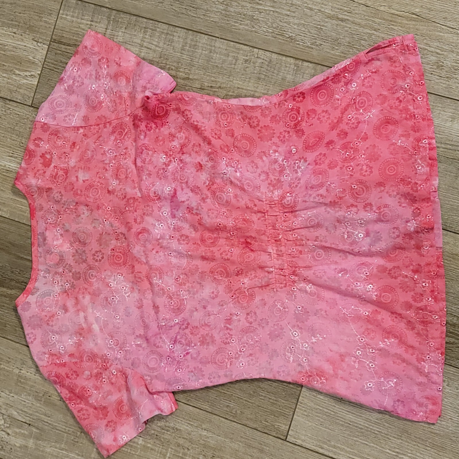 Koi By Kathy Peterson Textured Floral Pink V Neck Scrub Top Size Small S