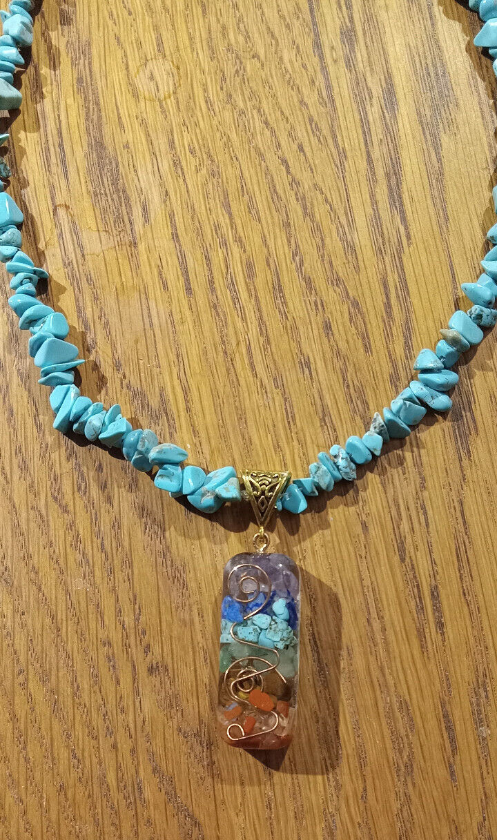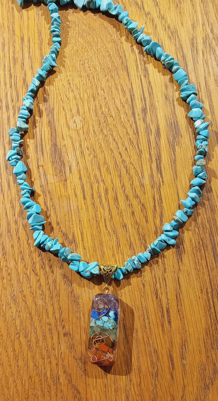 REIKI ORGONE CHAKRA Healing Pendant Turquoise Howlite Chip Necklace, Powerful