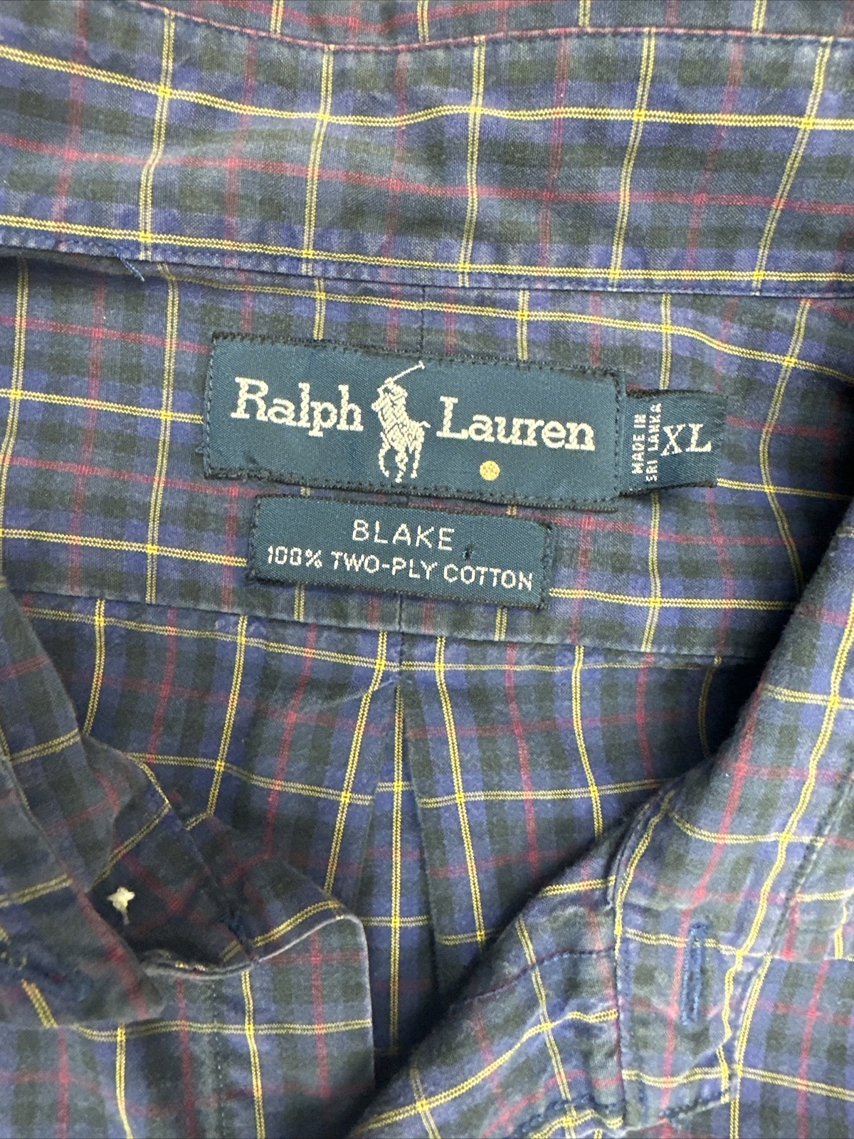 Ralph Lauren Men's Long Sleeve Shirt Blake XL Cotton Plaid Button Down