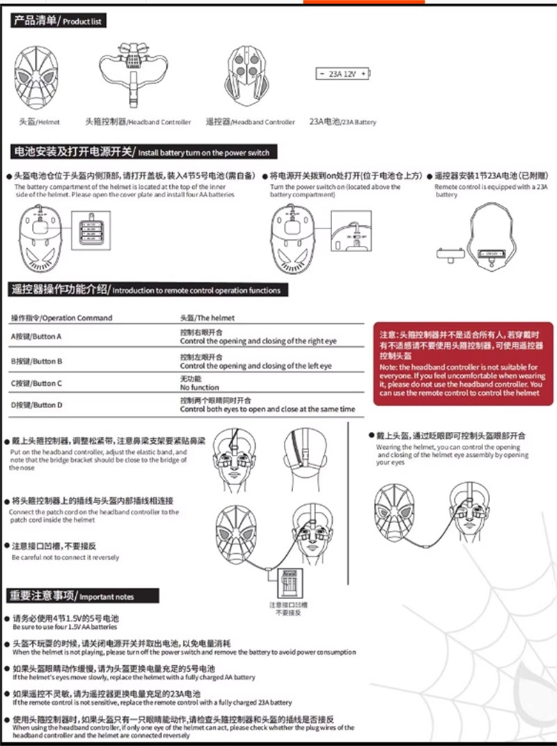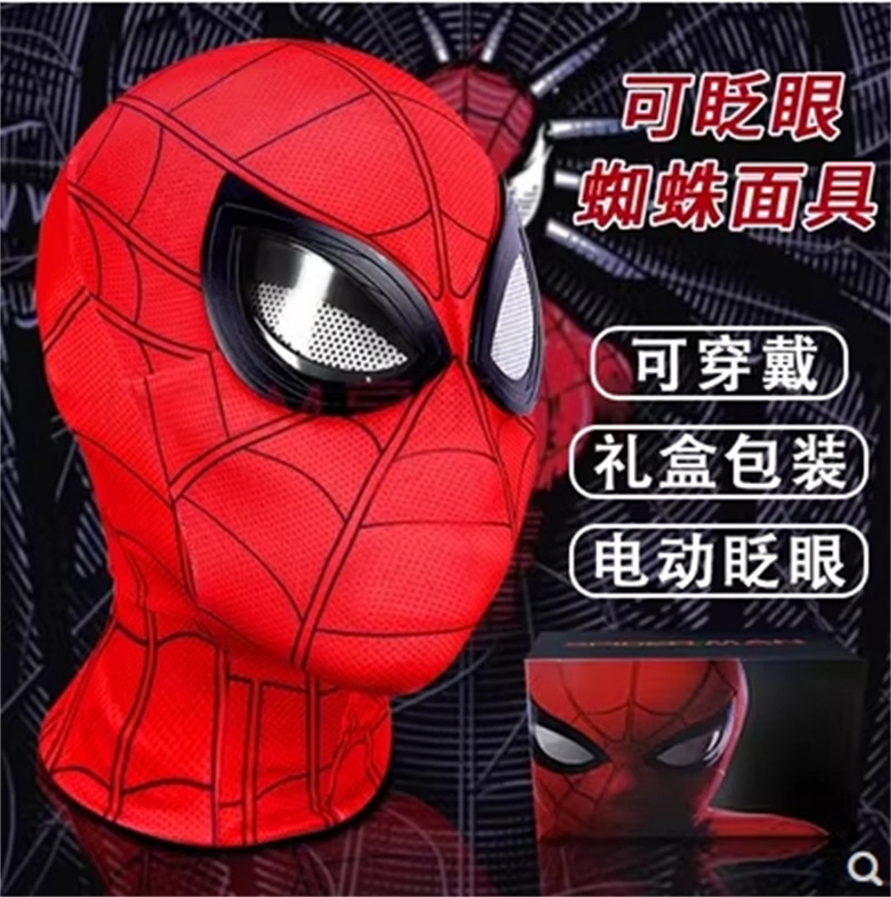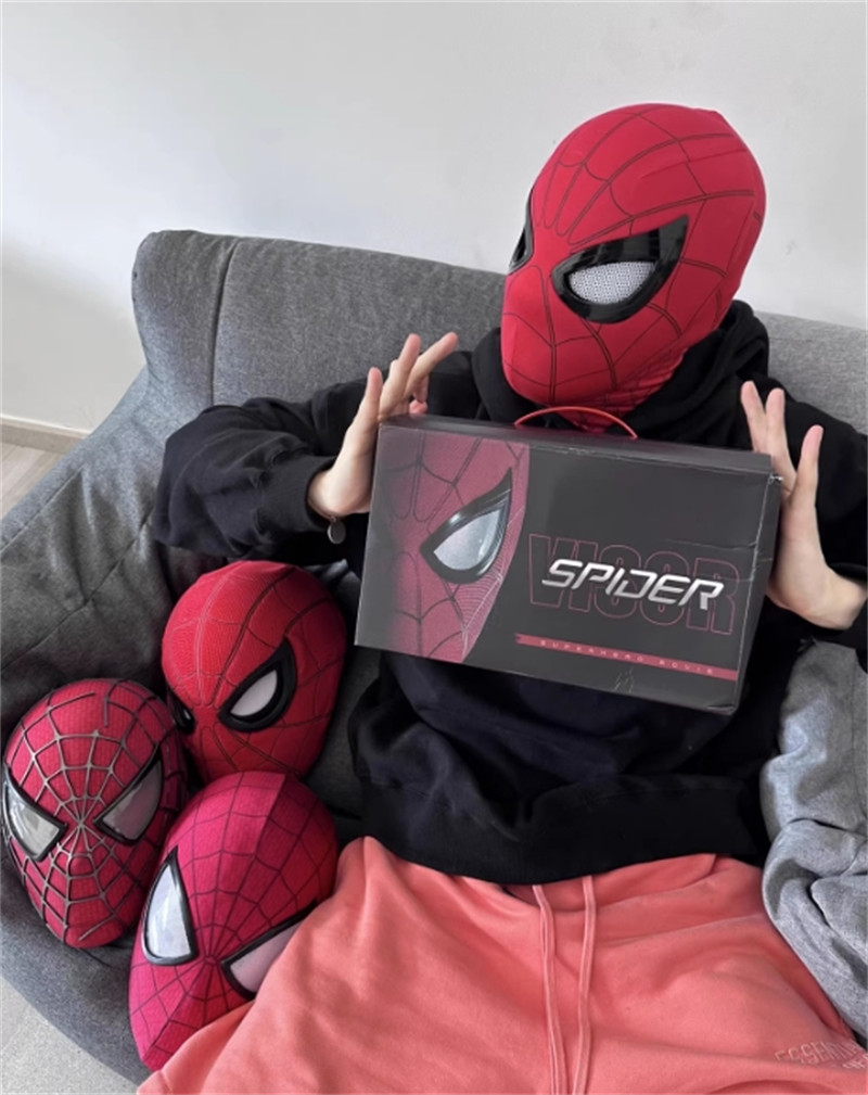 US Stock Spider-Man Mask Helmet Eyes Movable Ring Remote Control Cosplay Prop