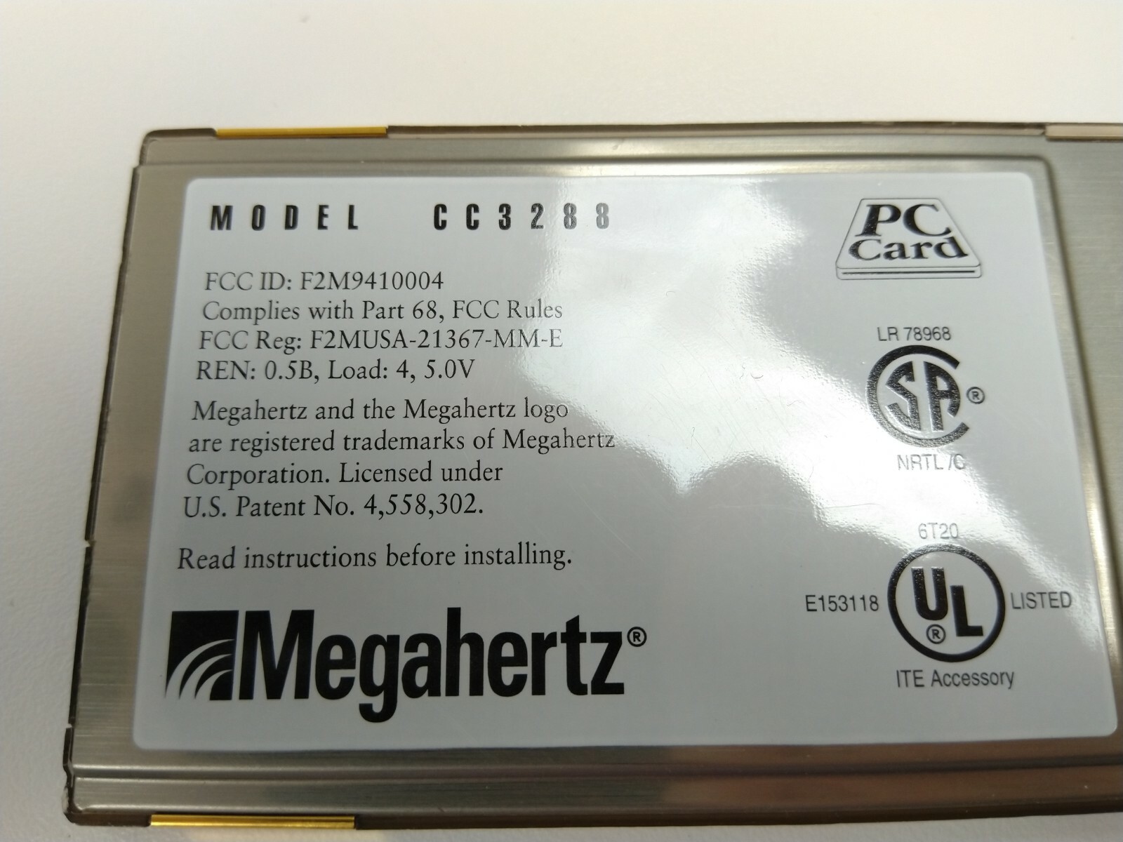 как выглядит PCMCIA MODEM 28.8/14.4 KBPS DATA/FAX By MEGAHERTZ CC3288 фото
