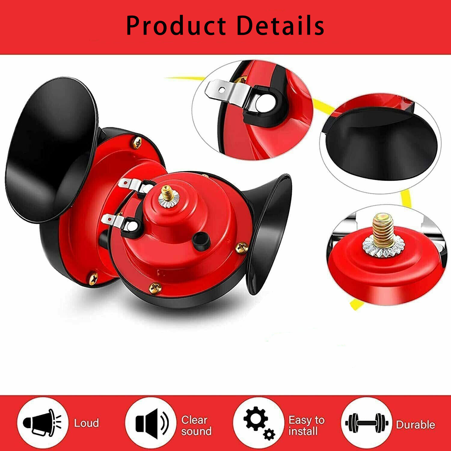 • 1Pair 12V high and low tone Super Loud Horn for family car bus