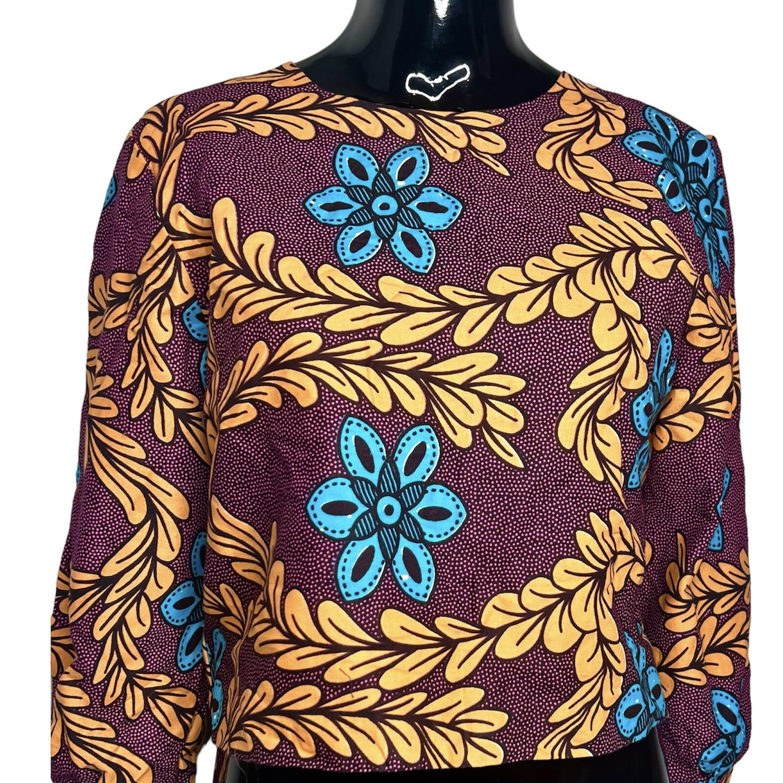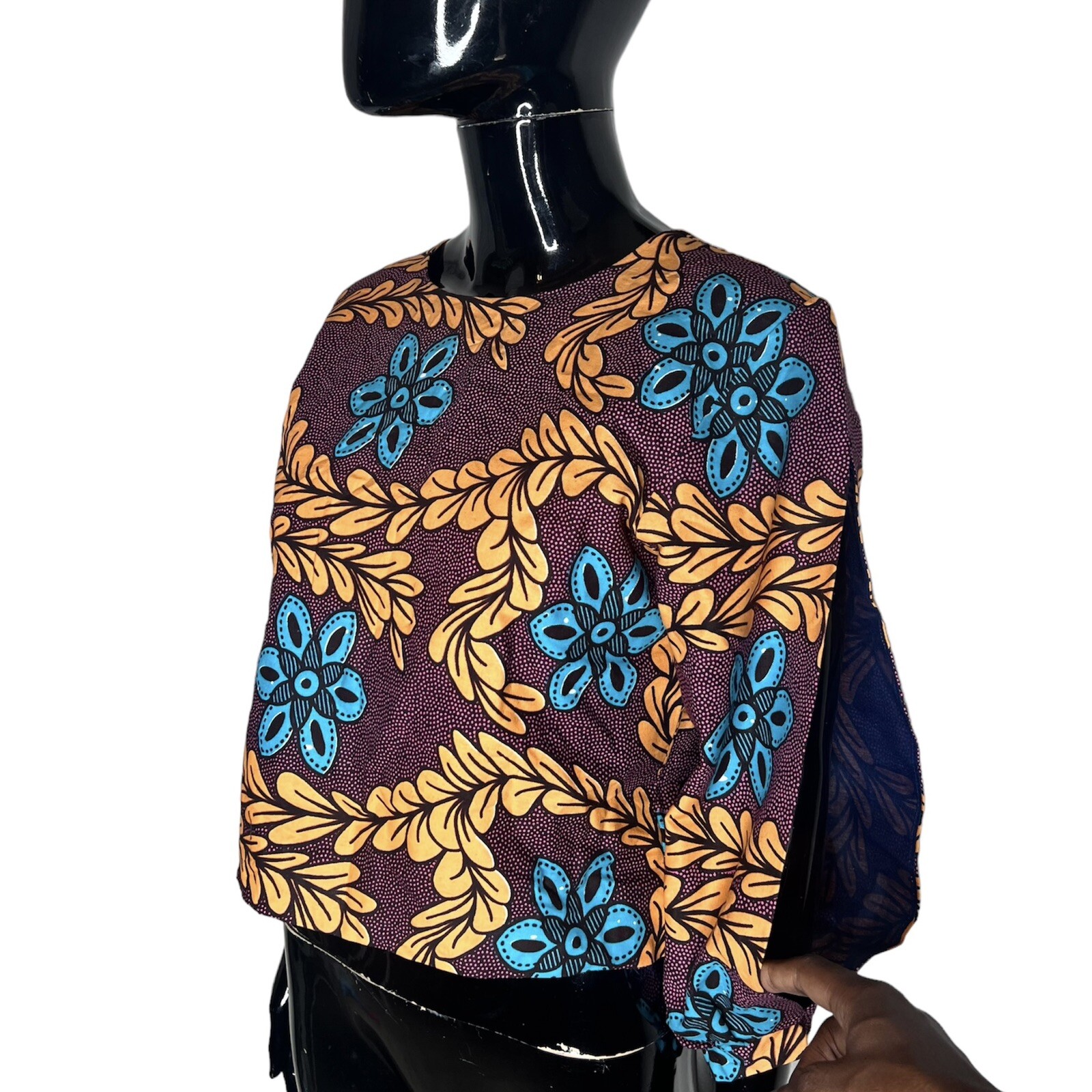 S/M Colorful African Print Women Slit Sleeve Blouse Shirt