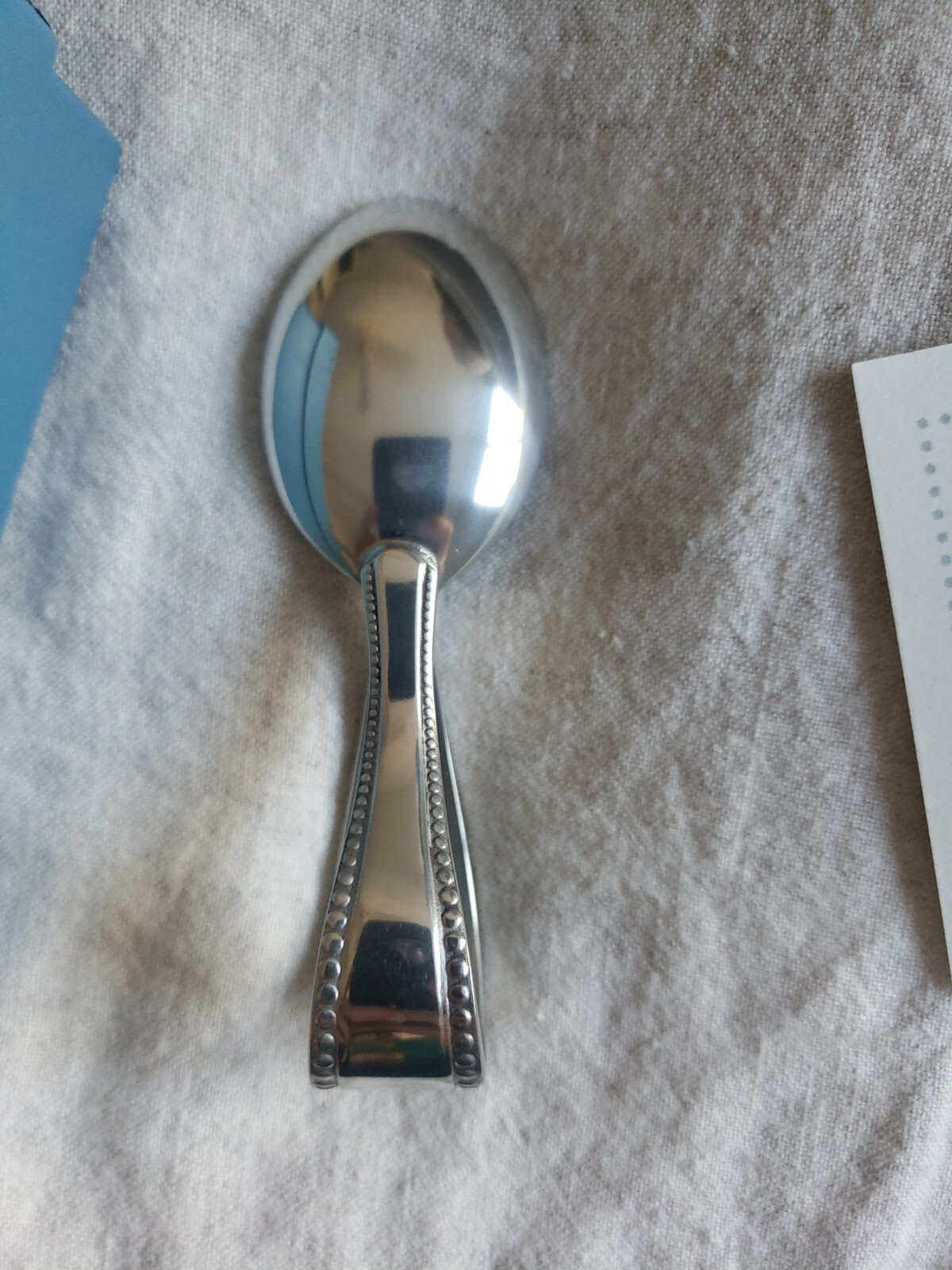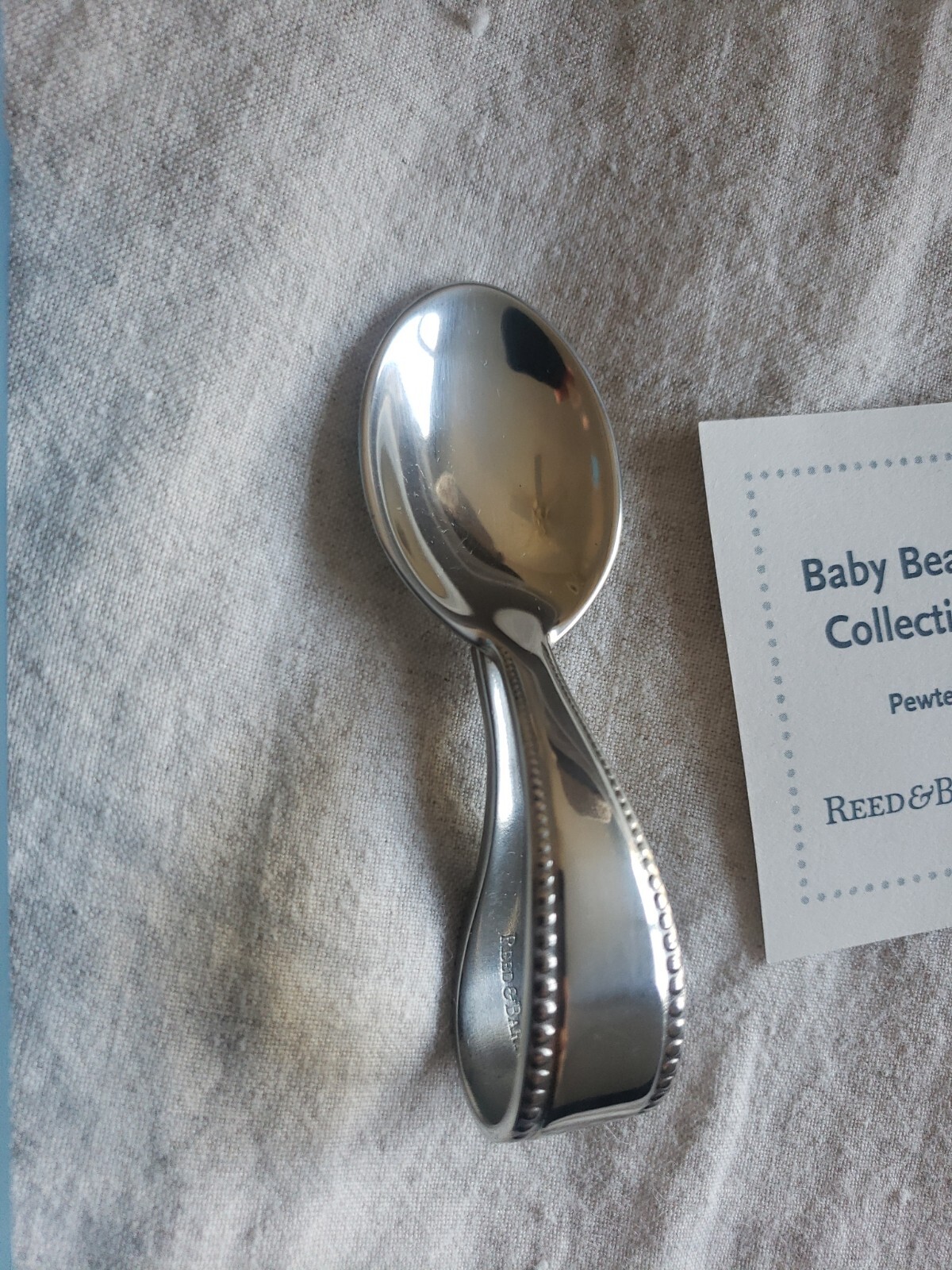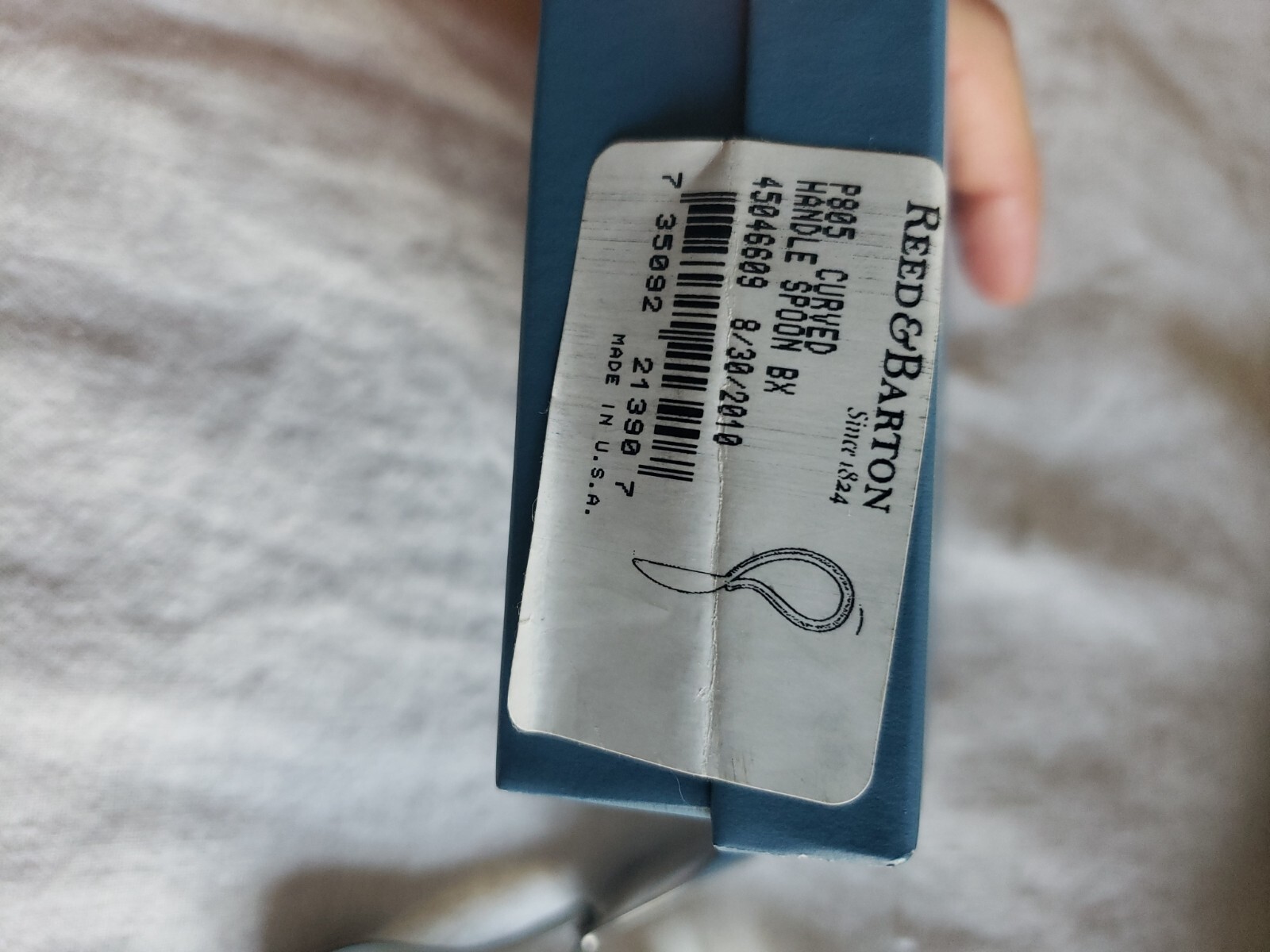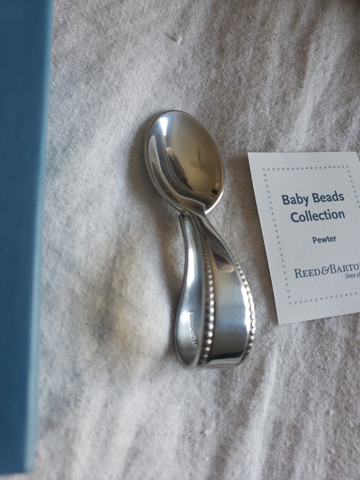 как выглядит Reed Barton Curved Handle Baby Spoon Pewter With Box фото