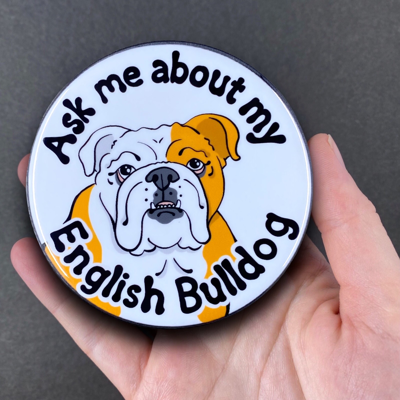 • Red English Bulldog Magnet Ask About My Dog Pet Decor Gift Handmade 3.5"