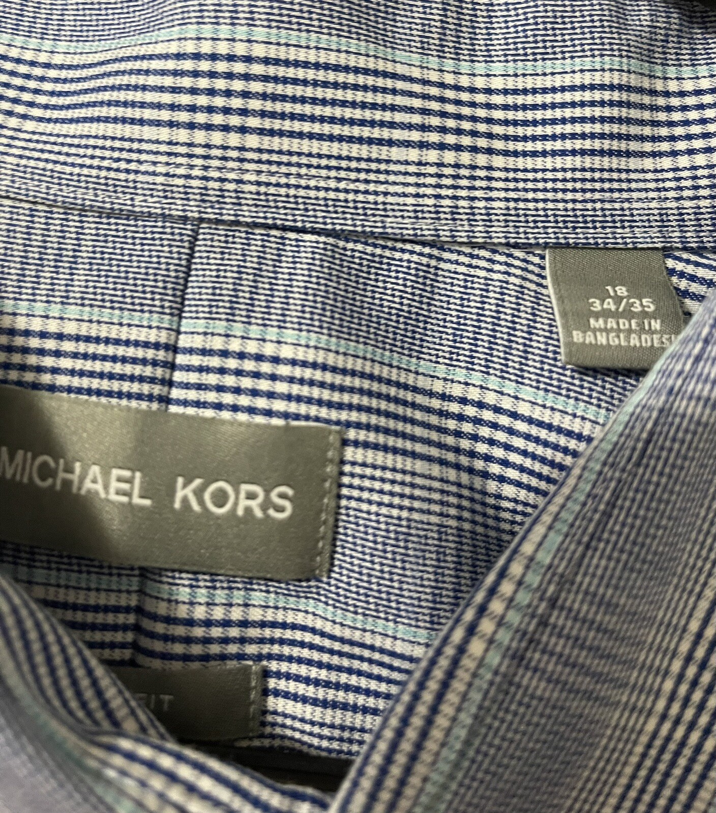 как выглядит Michael Kors Mens Dress Shirt Long Sleeve Big Fit Size 18 34/35 Blue Plaid фото