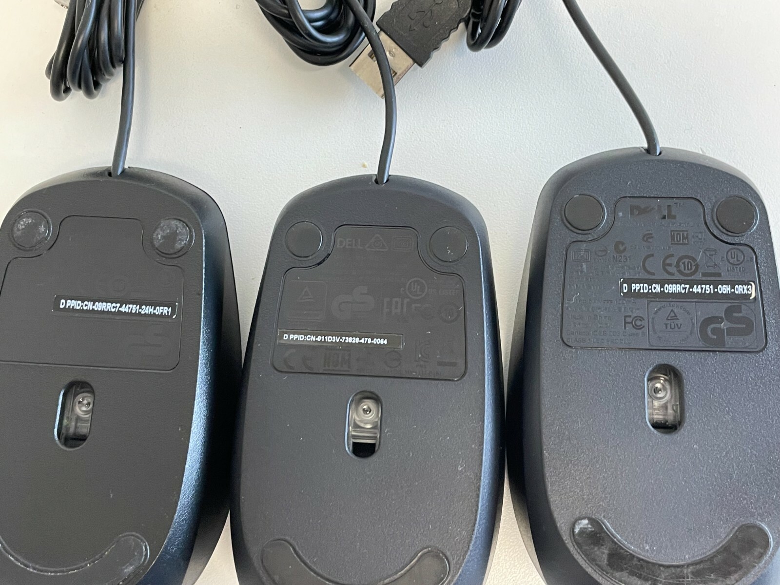 AA5: Lot of 3 Dell Wired USB Scroll Optical Mouse MS111-L MS111-P