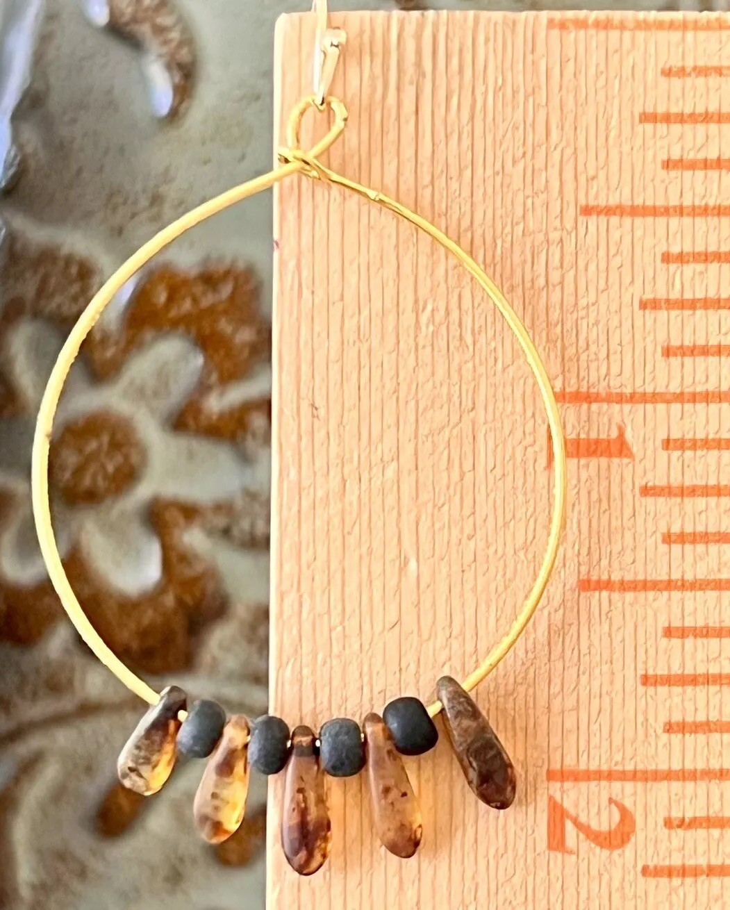 как выглядит Gold Hoop with Tortoise Teardrop Dangle Earrings. Boho Chic фото