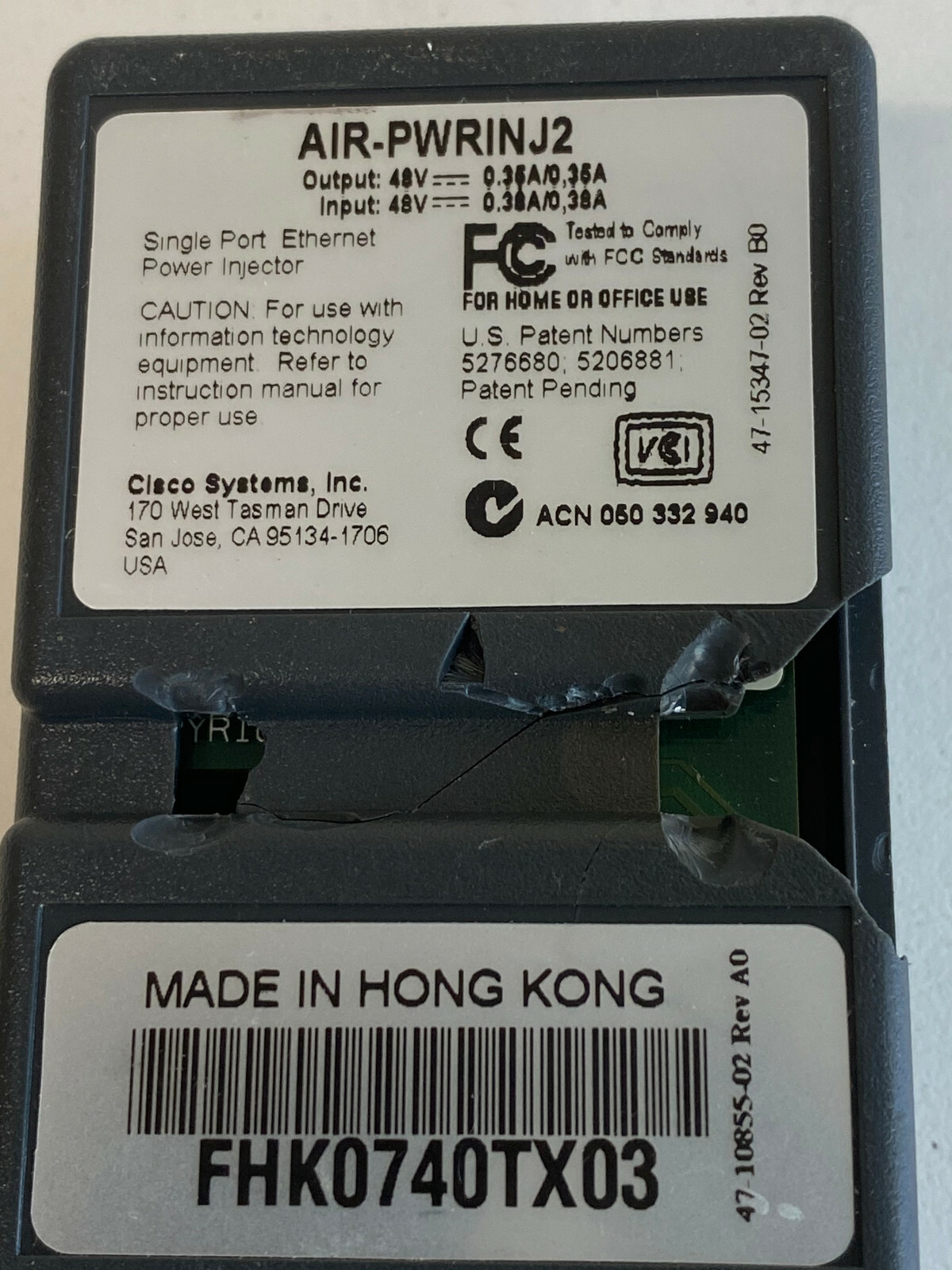 KK15: Cisco Systems 48V Power Injector AIR-PWRINJ2 Single Port Ethernet