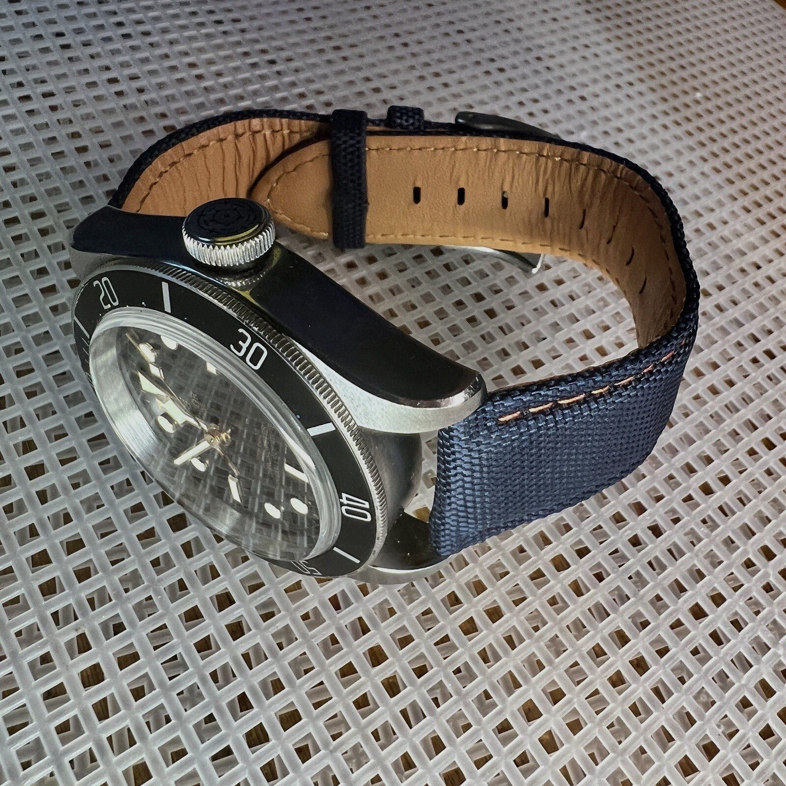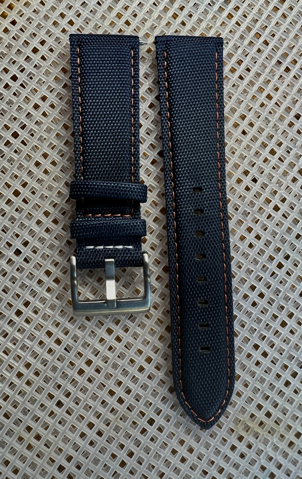20mm BLACK Sailcloth Canvas/Leather watch band strap ORANGE Stitch