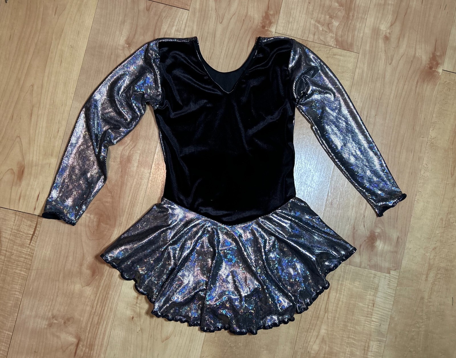 как выглядит NEW Girls SILVER METALLIC BLACK VELVET Competition FIGURE ICE SKATING DRESS фото