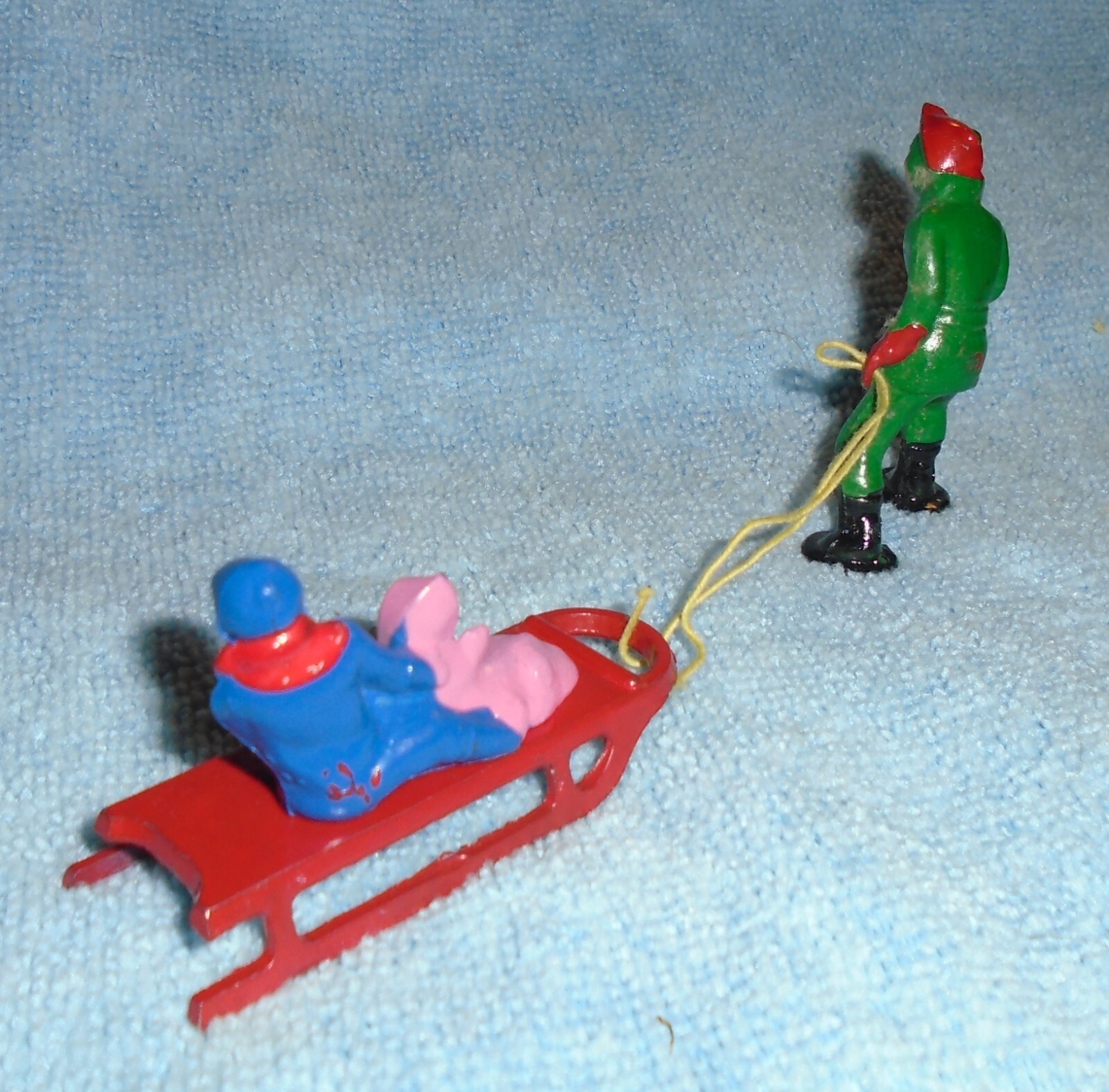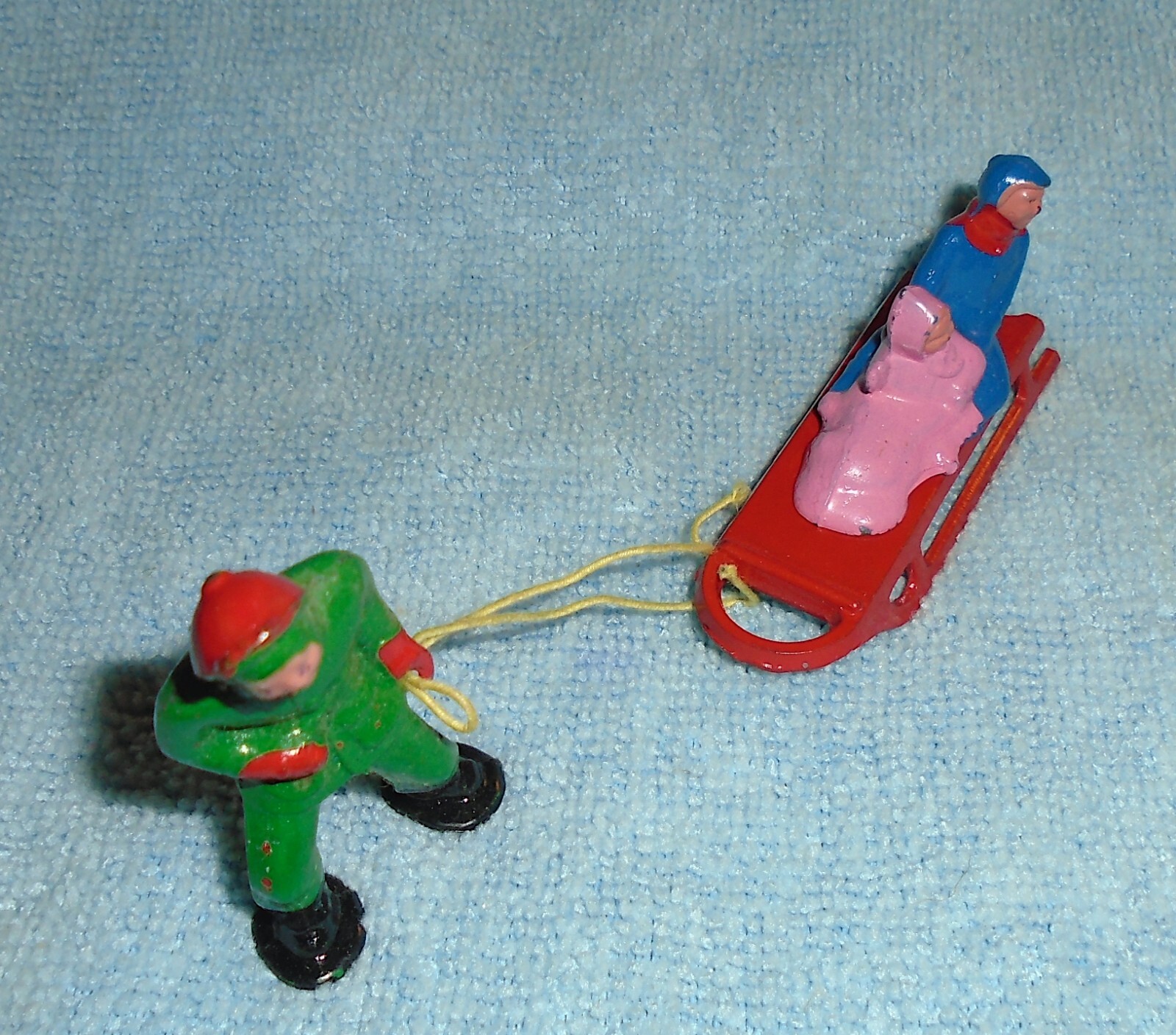 VINTAGE LEAD BARCLAY Man Pulling Children on Sled B199 Near Mint Free Ship B