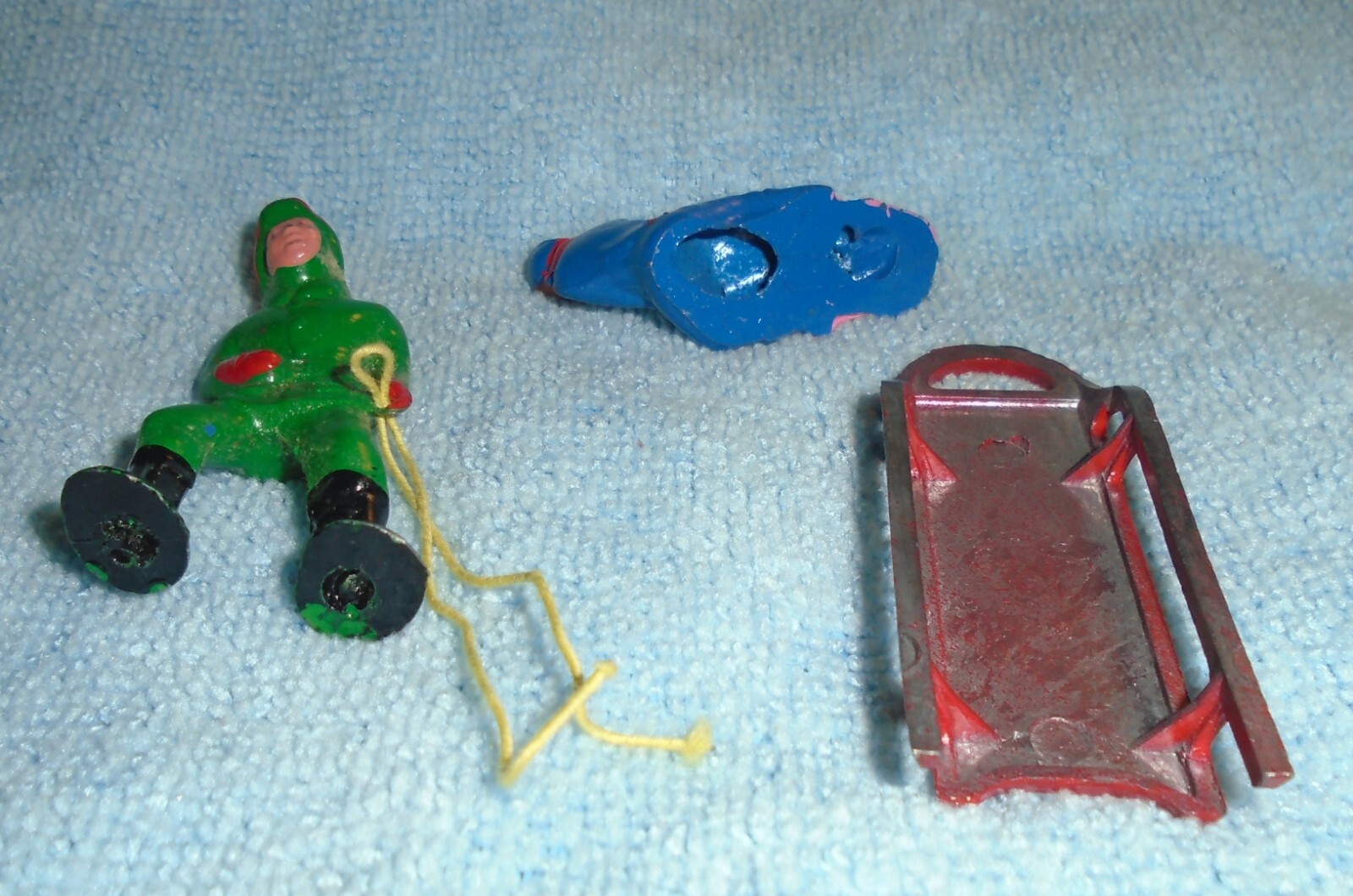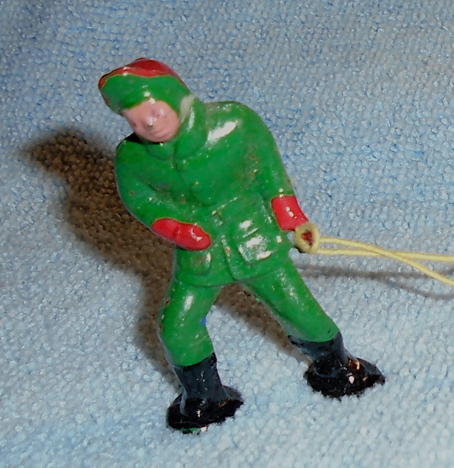 как выглядит VINTAGE LEAD BARCLAY "Man Pulling Children on Sled" B199 Near Mint Free Ship B фото