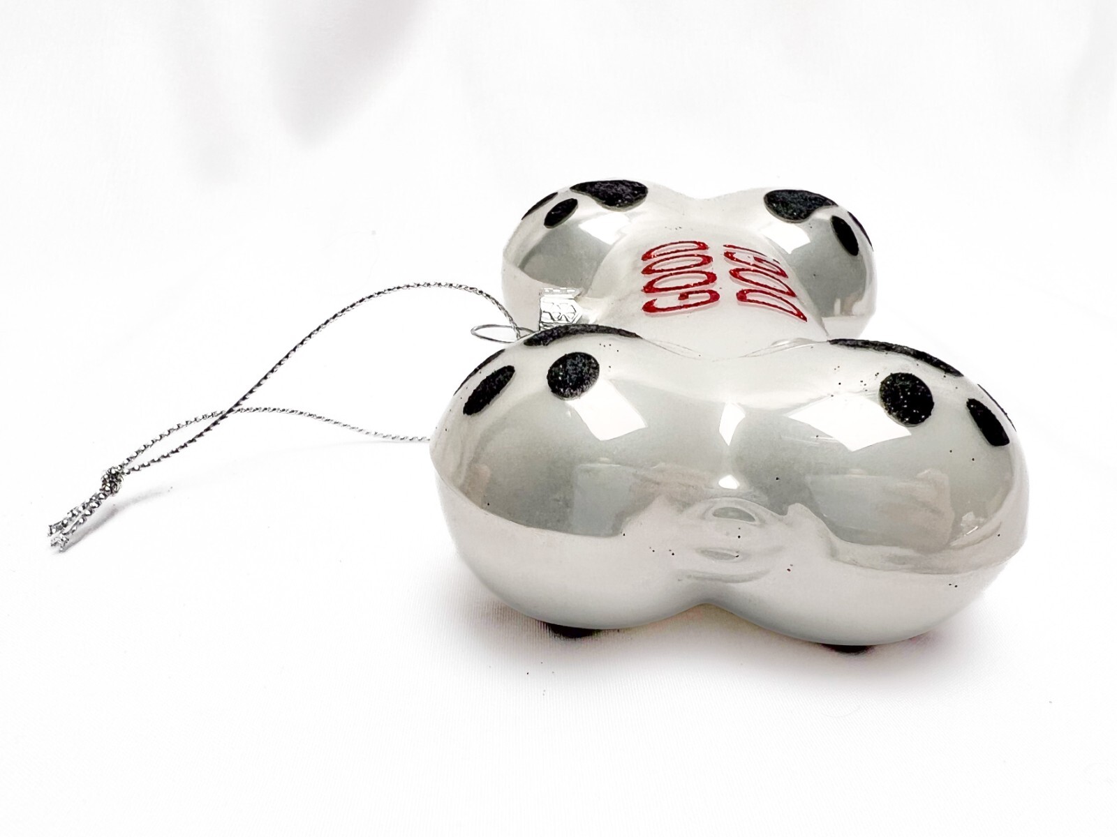 как выглядит Good Dog White Bone Paw Print Glass Christmas Ornaments Glitter - FREE SHIPPING фото