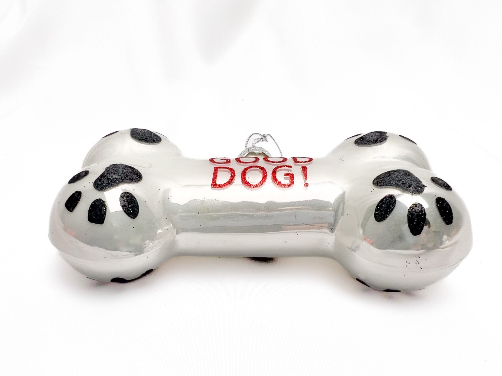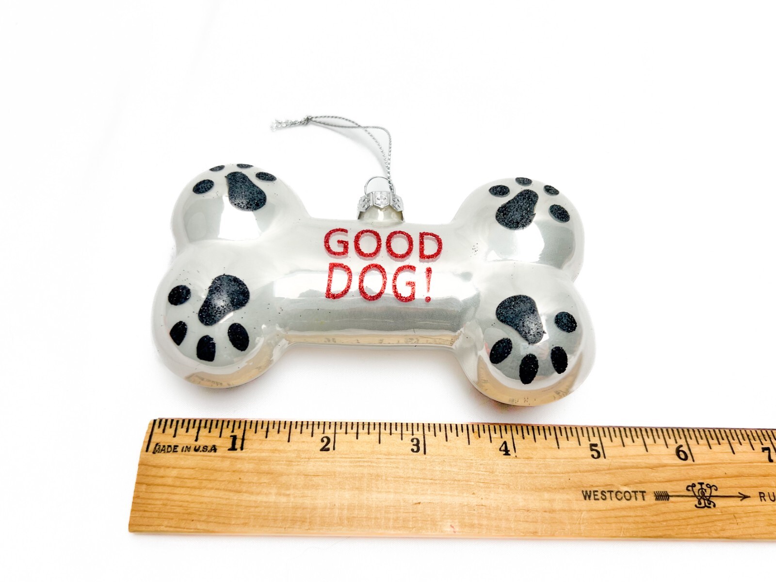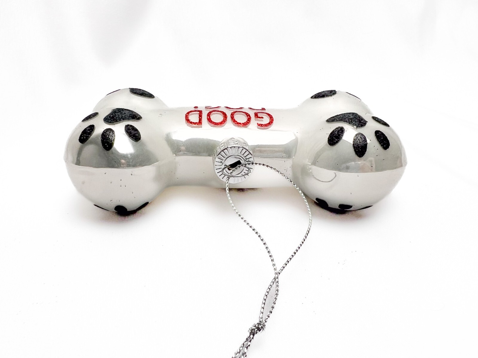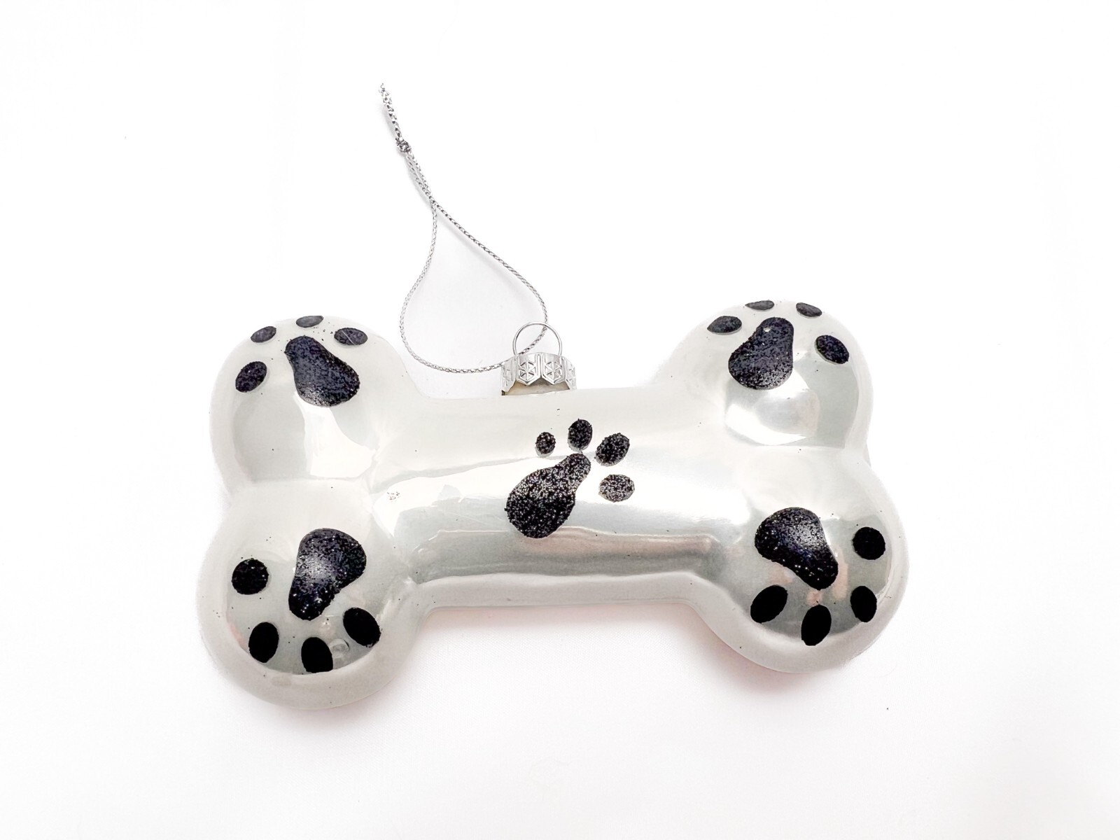 Good Dog White Bone Paw Print Glass Christmas Ornaments Glitter - FREE SHIPPING