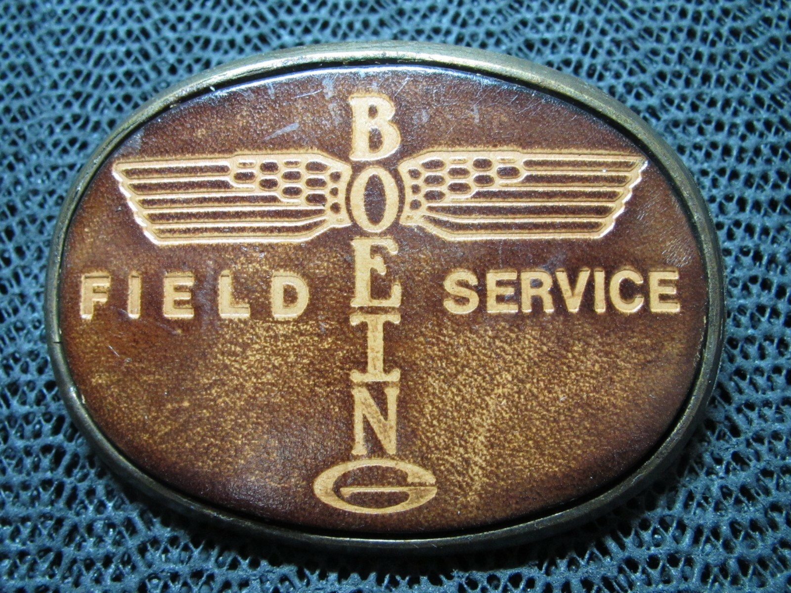 LOT OF 2 BOEING LEATHER INSERT BELT BUCKLE VINTAGE RARE FIELD SERVICE 1980s