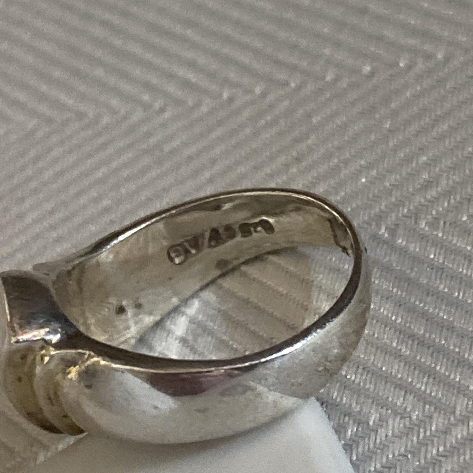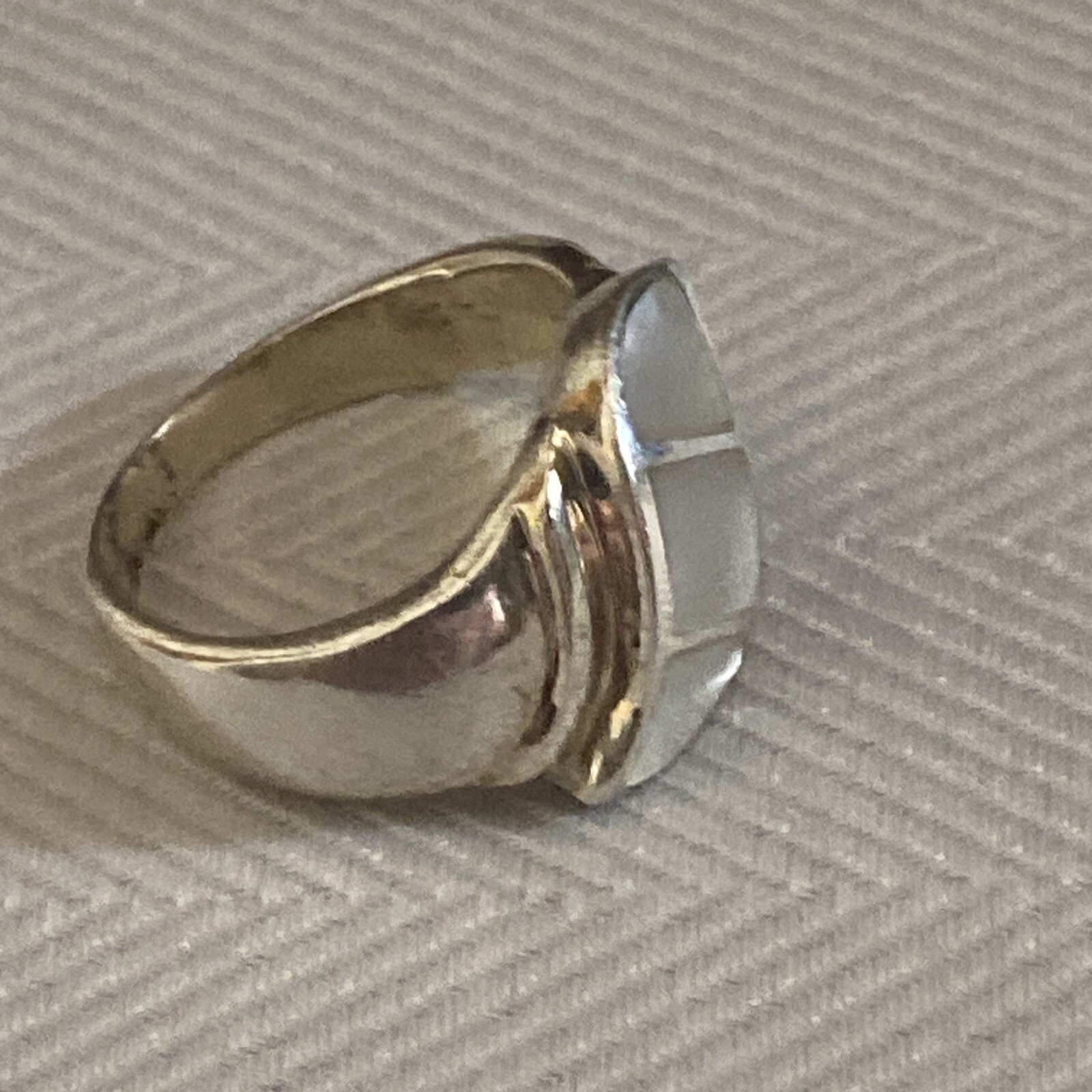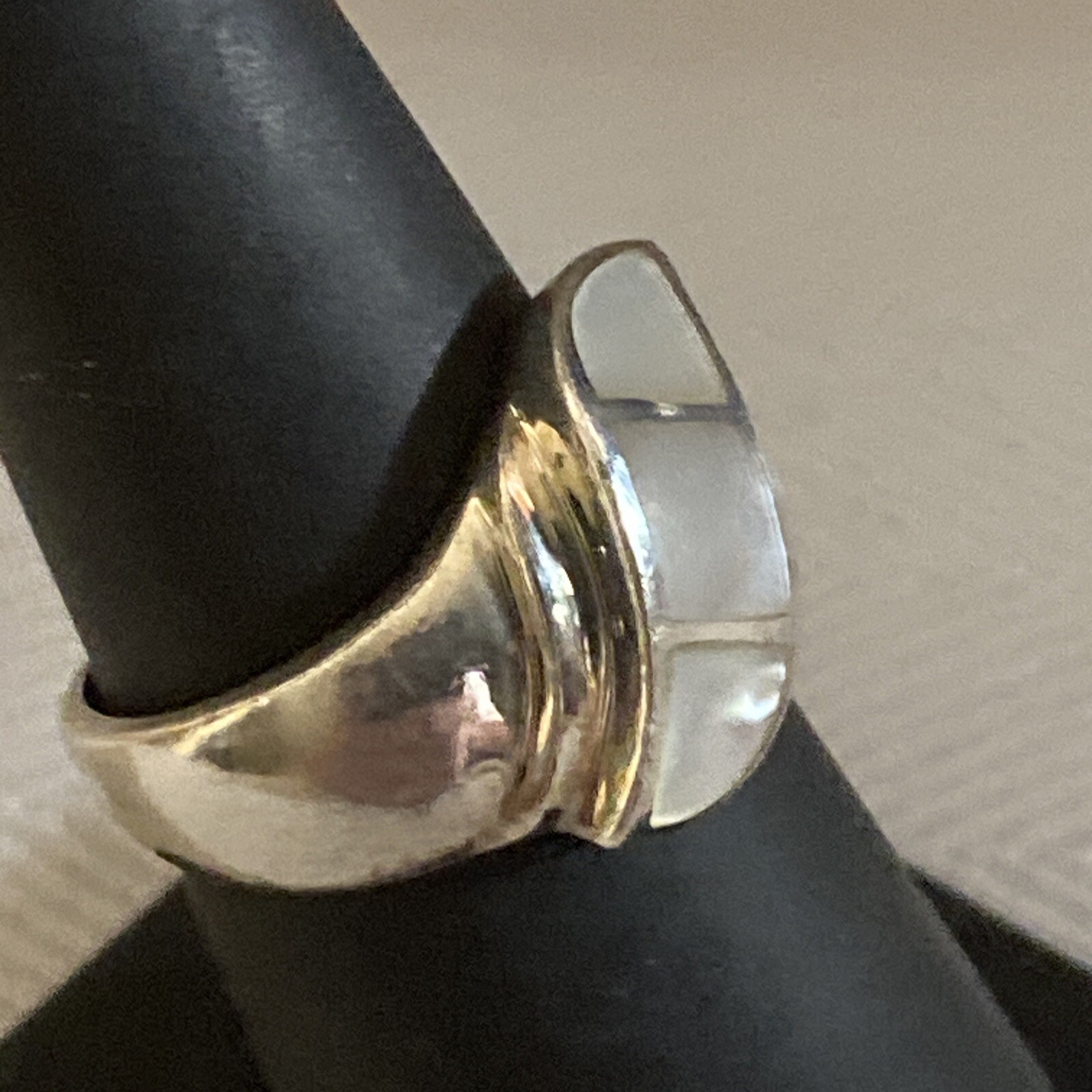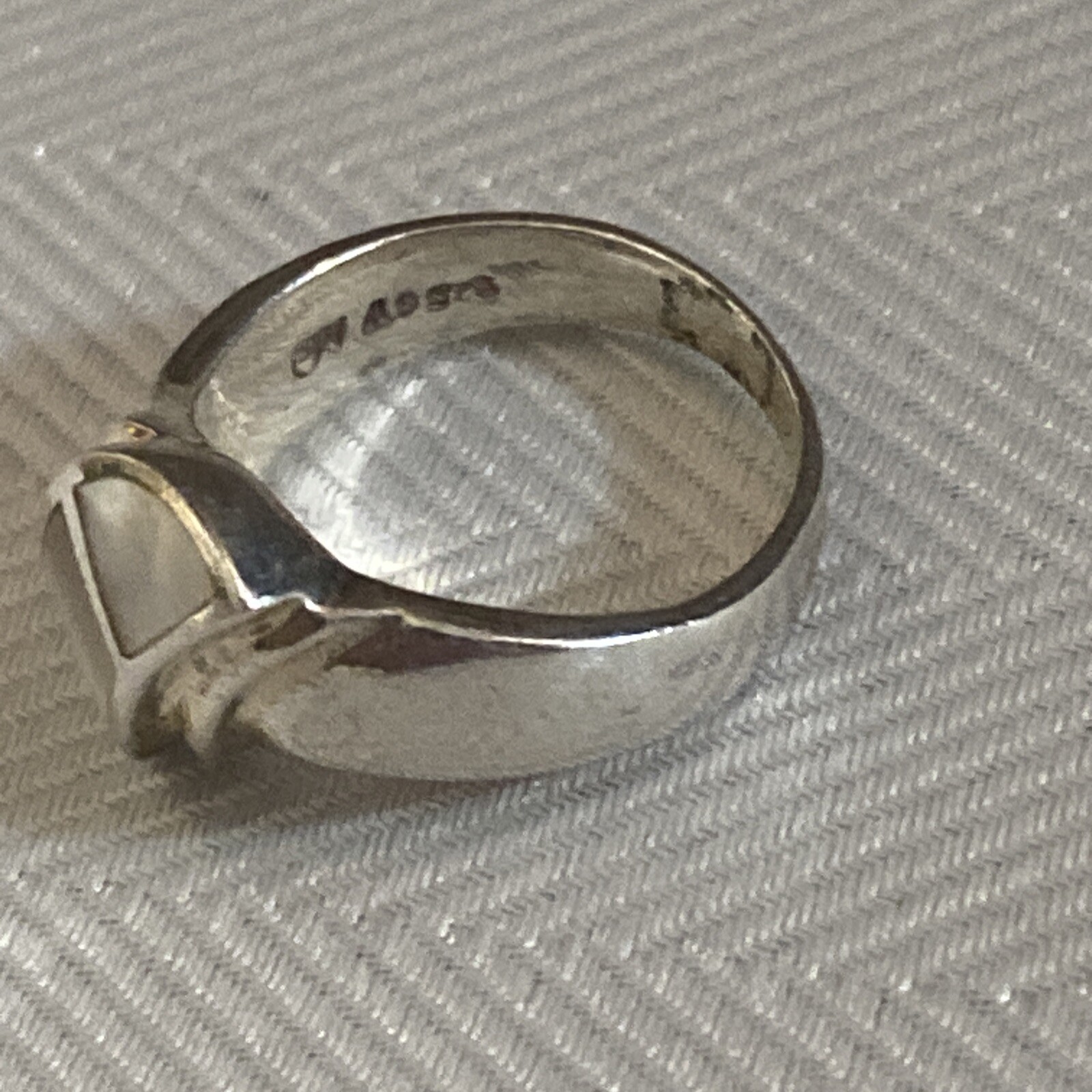 как выглядит Designer Signed Beautiful Sterling White Mother Of Pearl Inlay Ring Size 6.5 фото