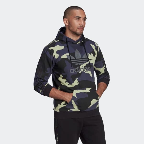 Особенности: Hooded, 70% cotton/30% polyester, Kangaroo Hand Pocket, Camo Adidas Originals Trefoil Logo, Pullover Sweatshirt, All over camo pattern