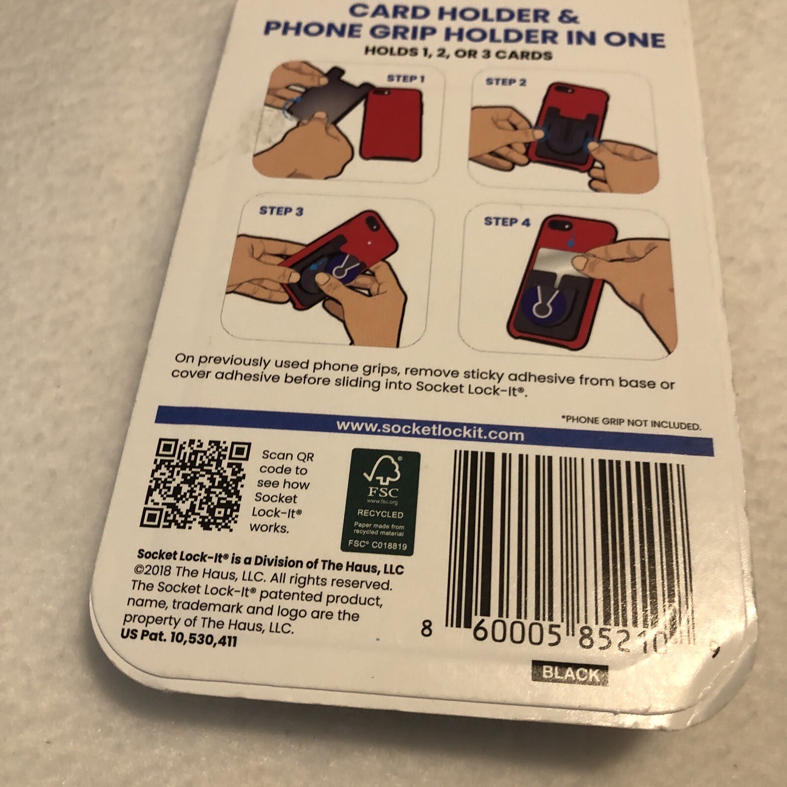 Socket Lock-It, Adhesive Card Holder Phone Grip Holder in One. NEW, SEALED
