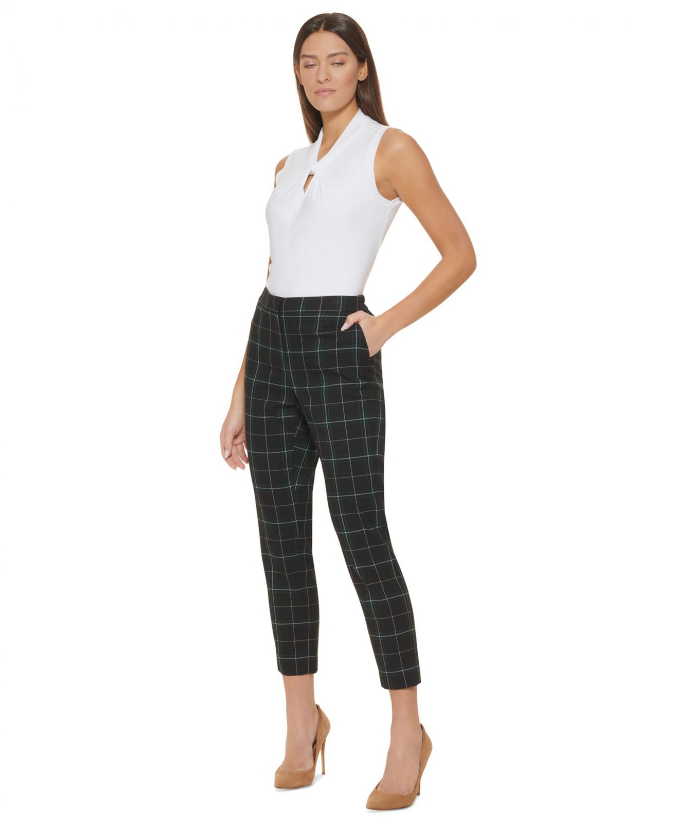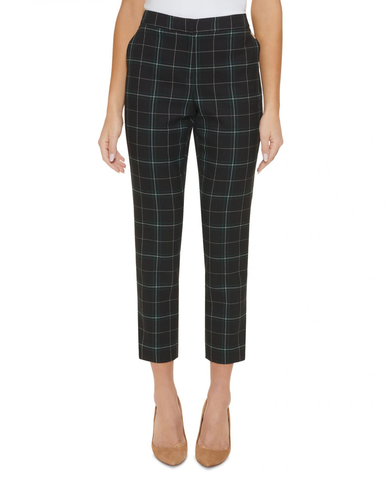 как выглядит Tommy Hilfiger Womens Plaid Straight Leg Mid Rise Trousers H1NPZ43D 4 фото