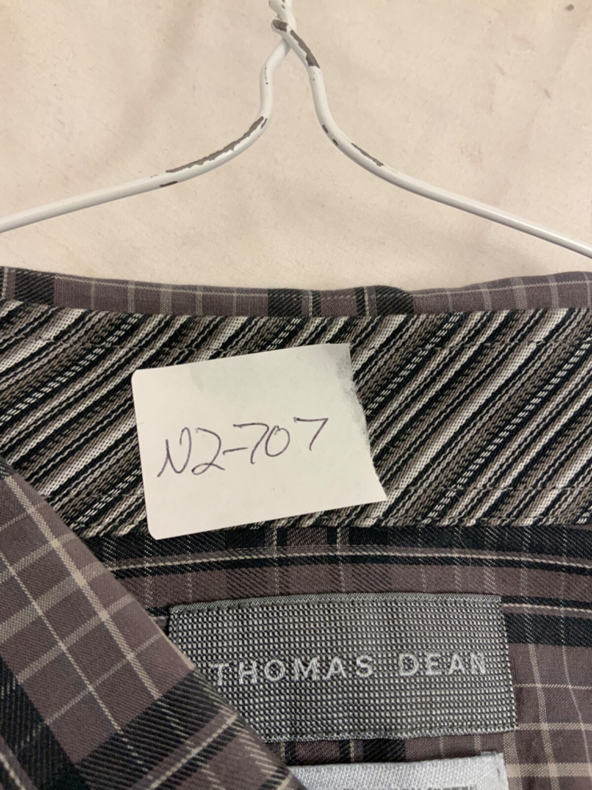 как выглядит Thomas Dean Dress Shirt L Brown Gray Plaid Cotton Button Front YGI N2-707 фото