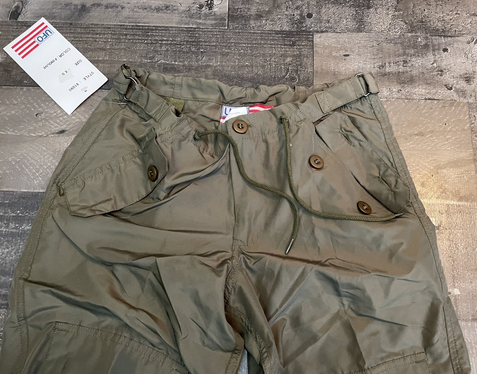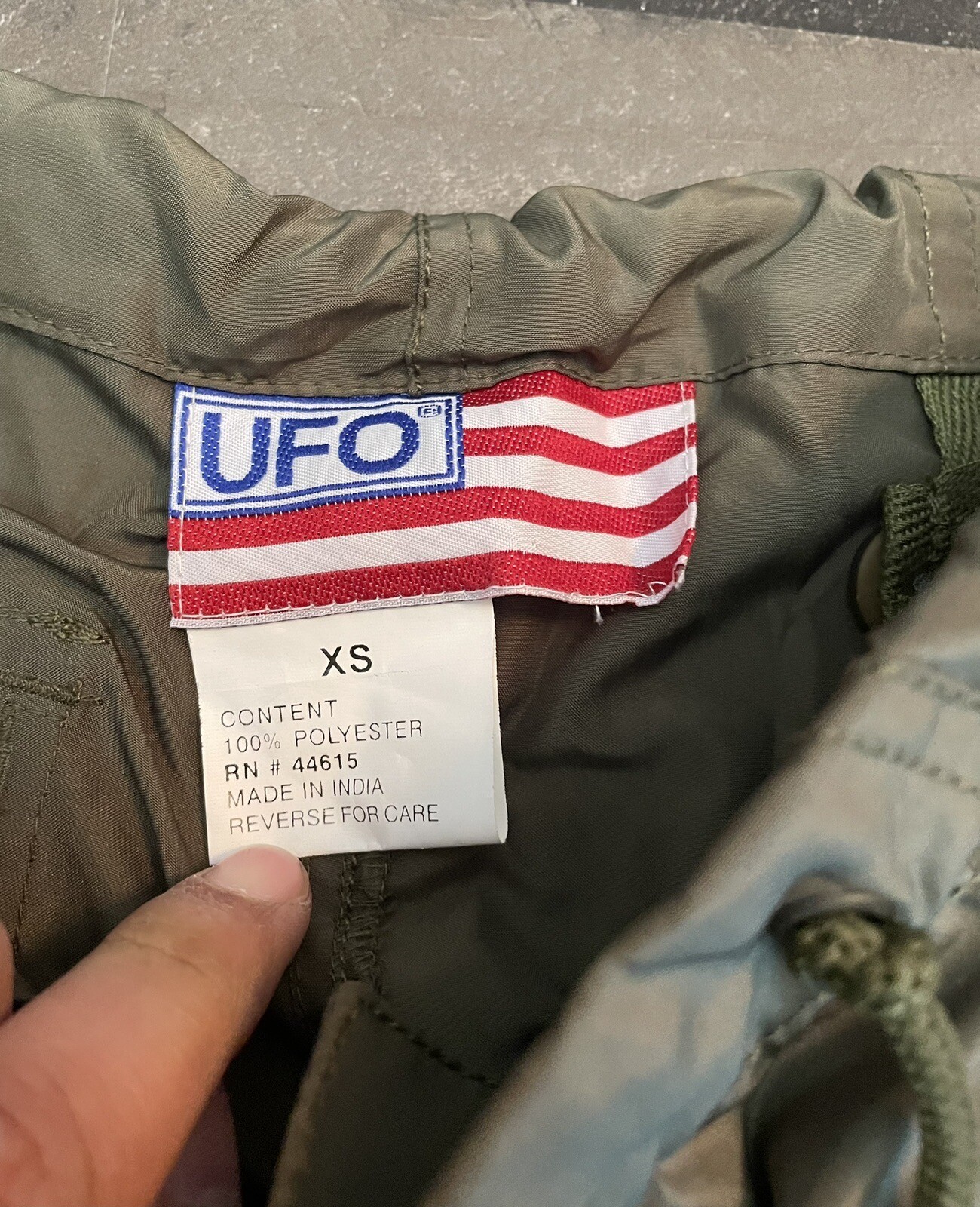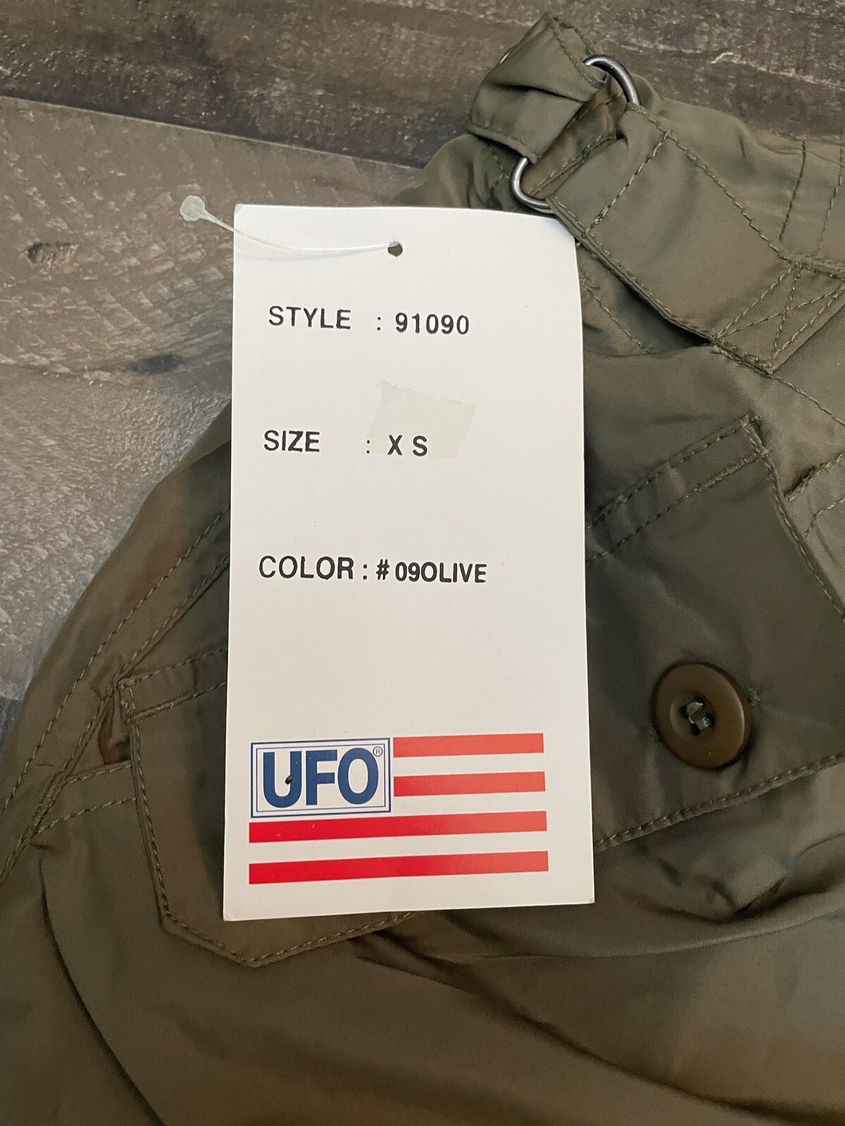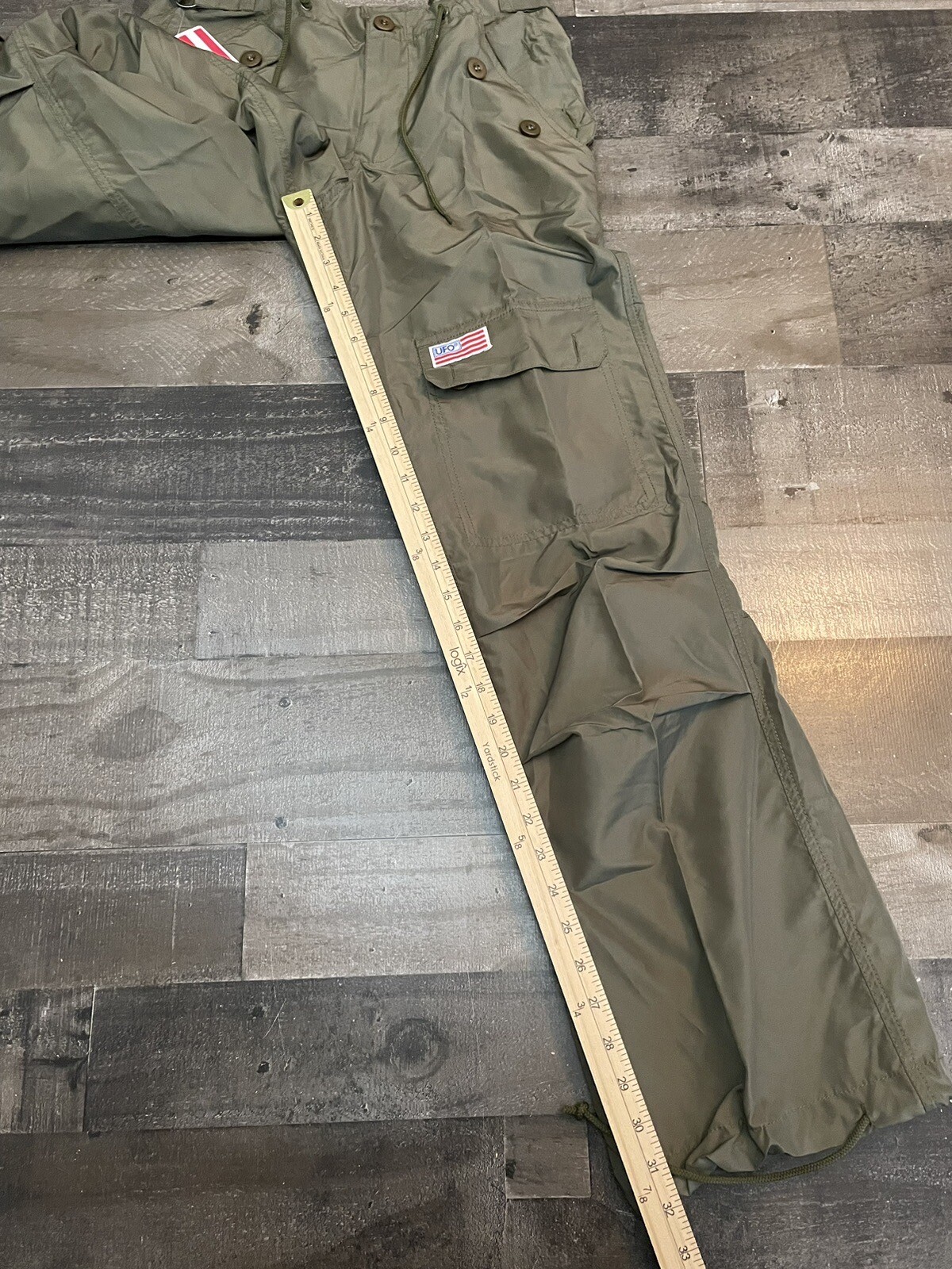 NWT Vintage 90s UFO Spell Out Parachute Rave Cargo Pants Olive Freen Size XS