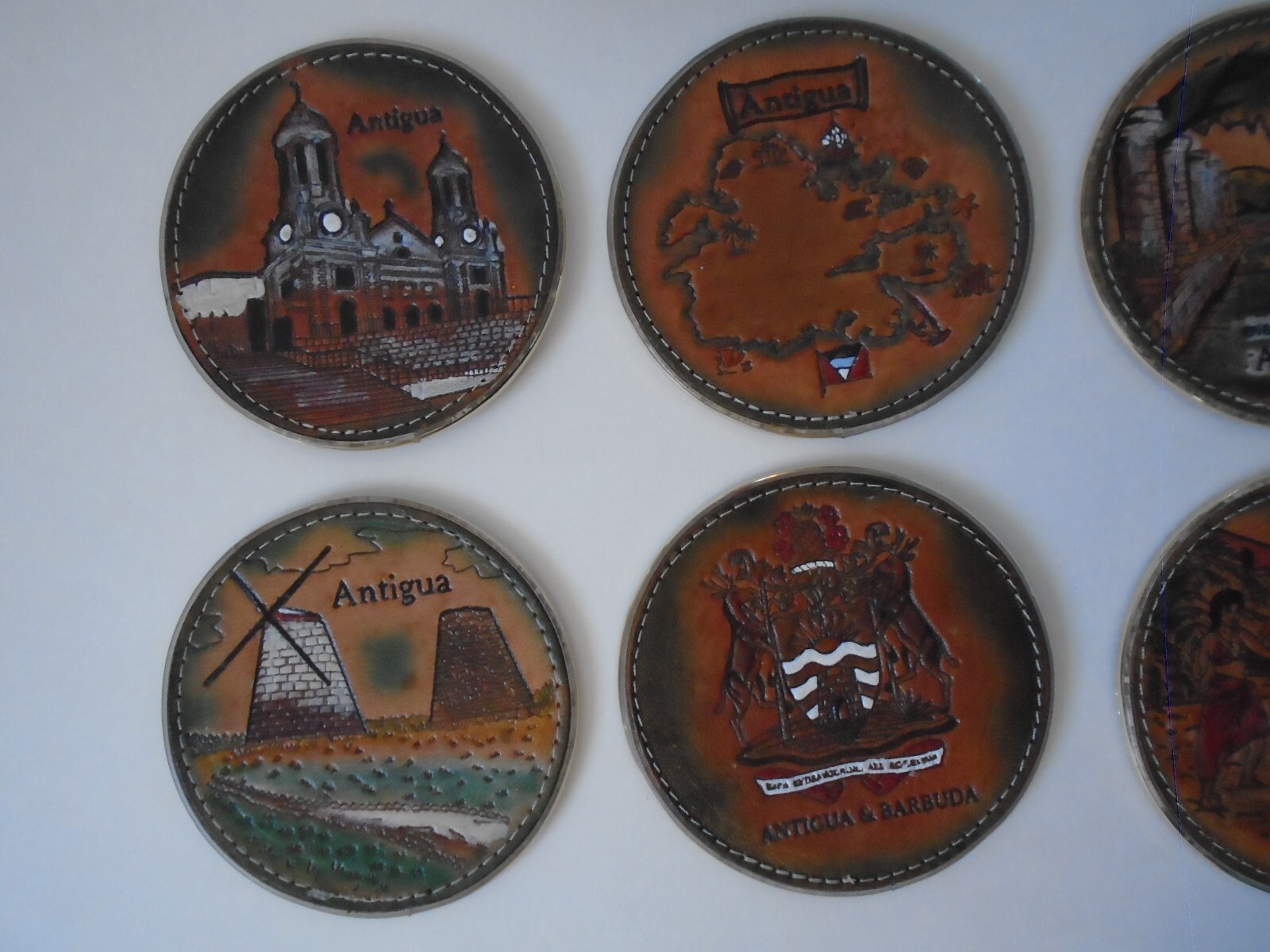 как выглядит Antigua Set of 6 Leather Drink Coasters and Stand - Beautiful - Excellent Cond фото