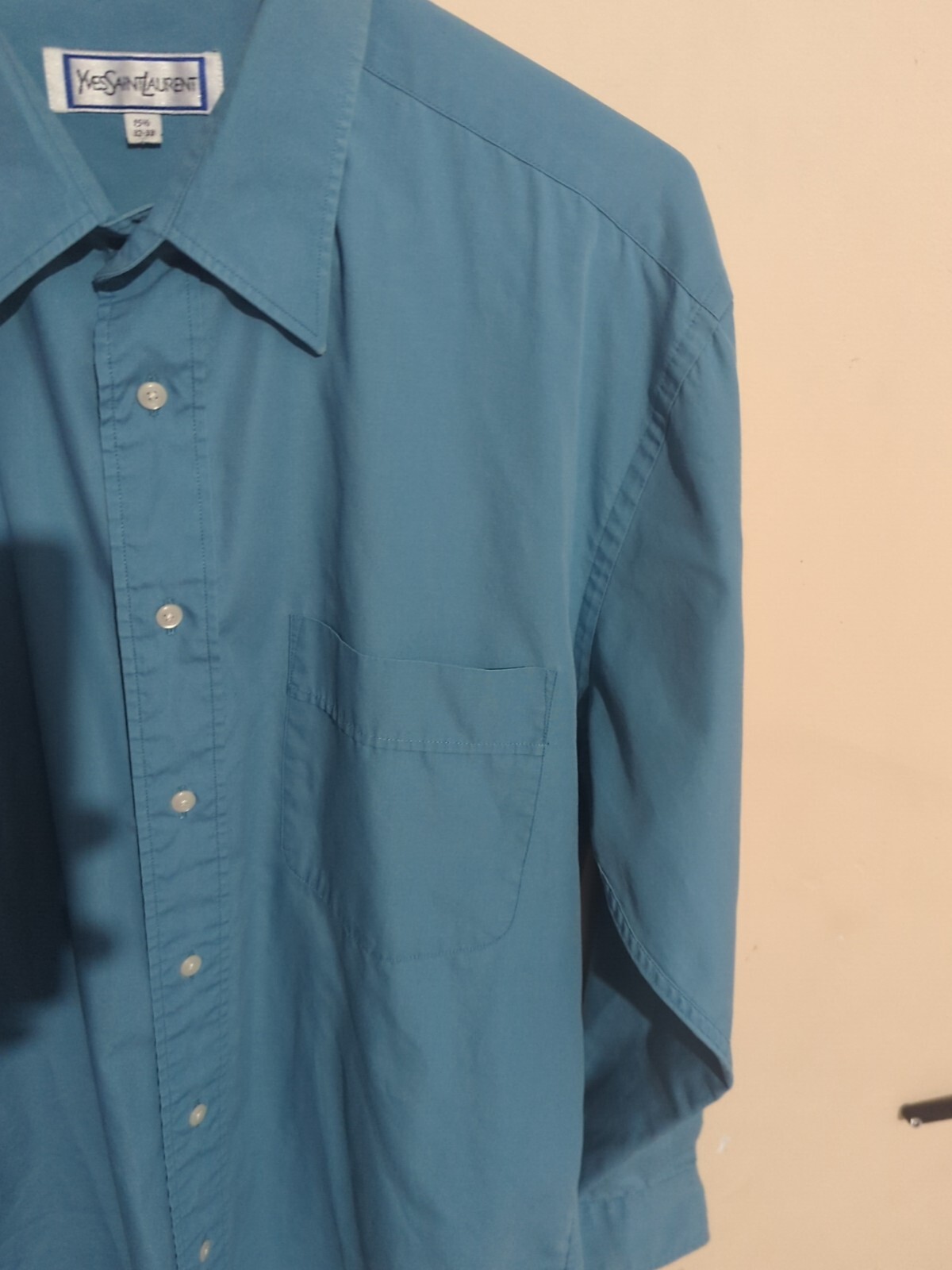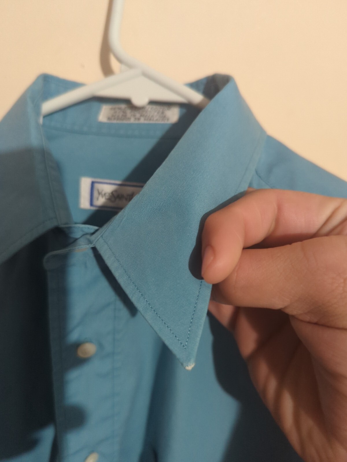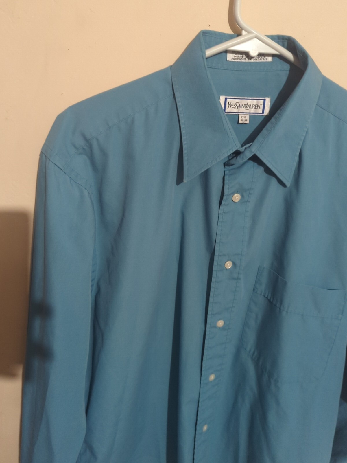 как выглядит Yves Saint Laurent Mens Button Up Shirt Sz 15 1/2 32-33 Blue Long Sleeve фото