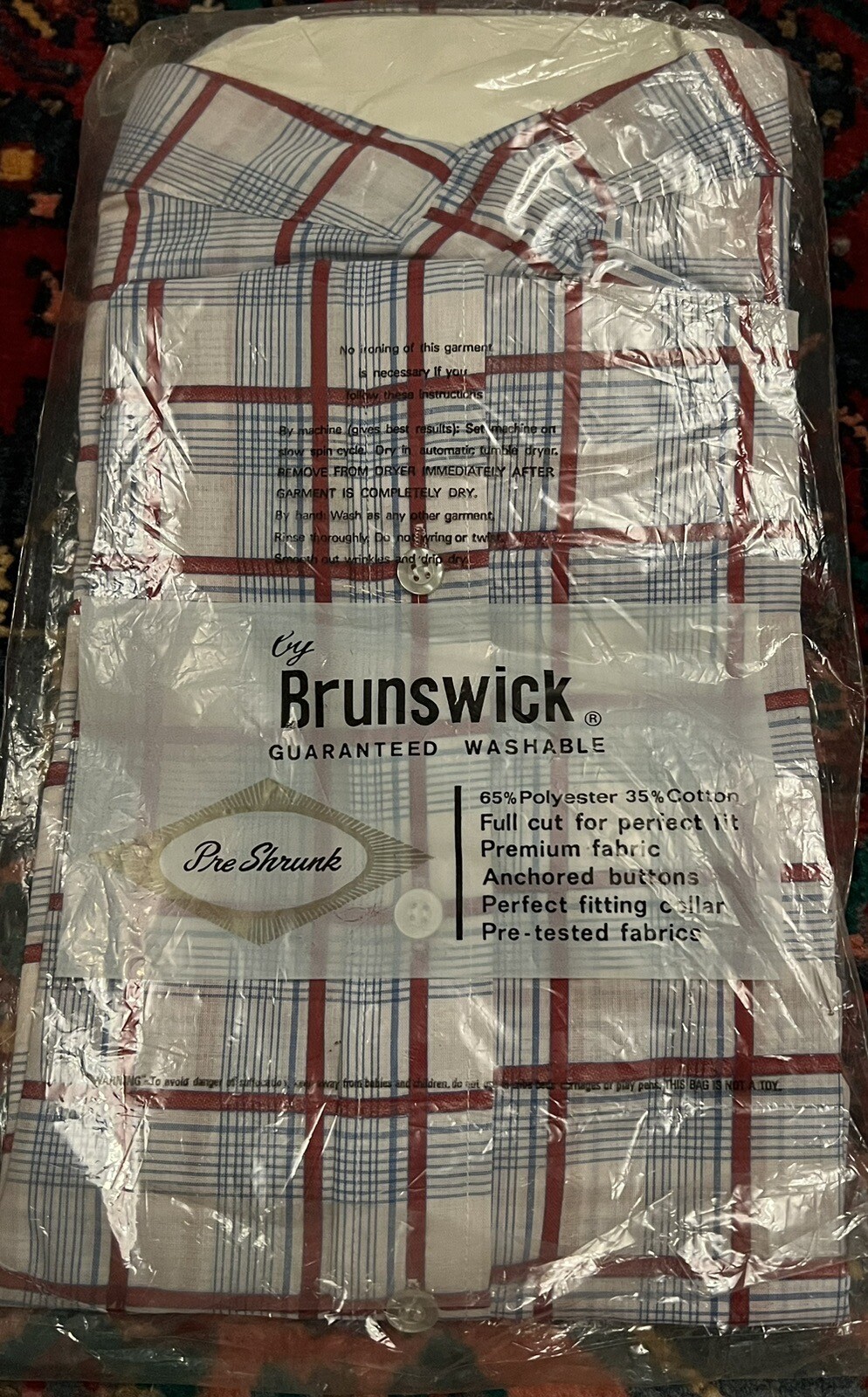 Vintage 1970's Plaid 100 Cotton Blue Red By Brunswick Shirt M 15 15 1/2 NEW