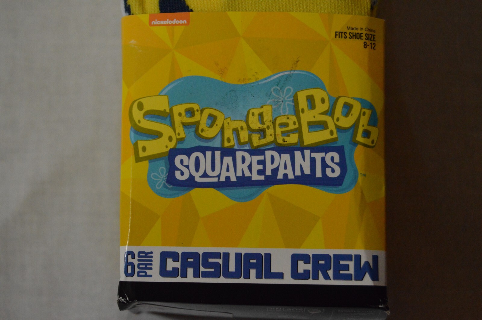 SpongeBob Squarepants Casual Crew Socks 6 pair Size 8-12 Nickelodeon