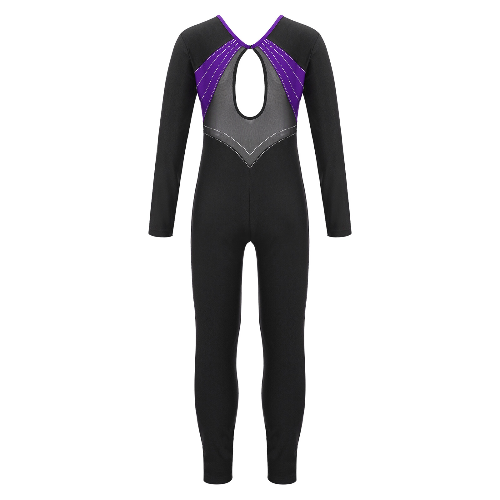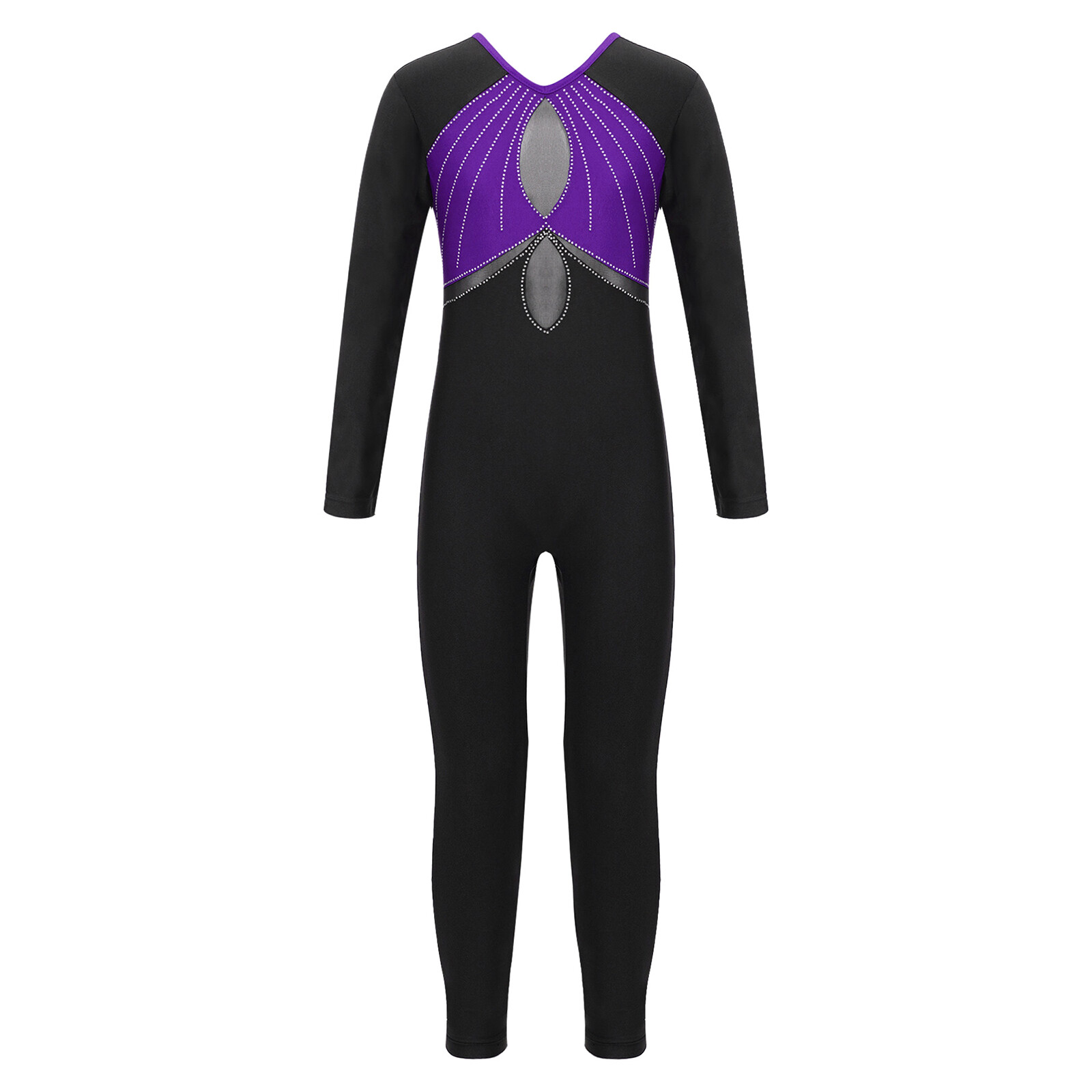 Kids Girls Bodysuit Long Sleeve Dancewear Workout Jumpsuit Sparkle Leotards