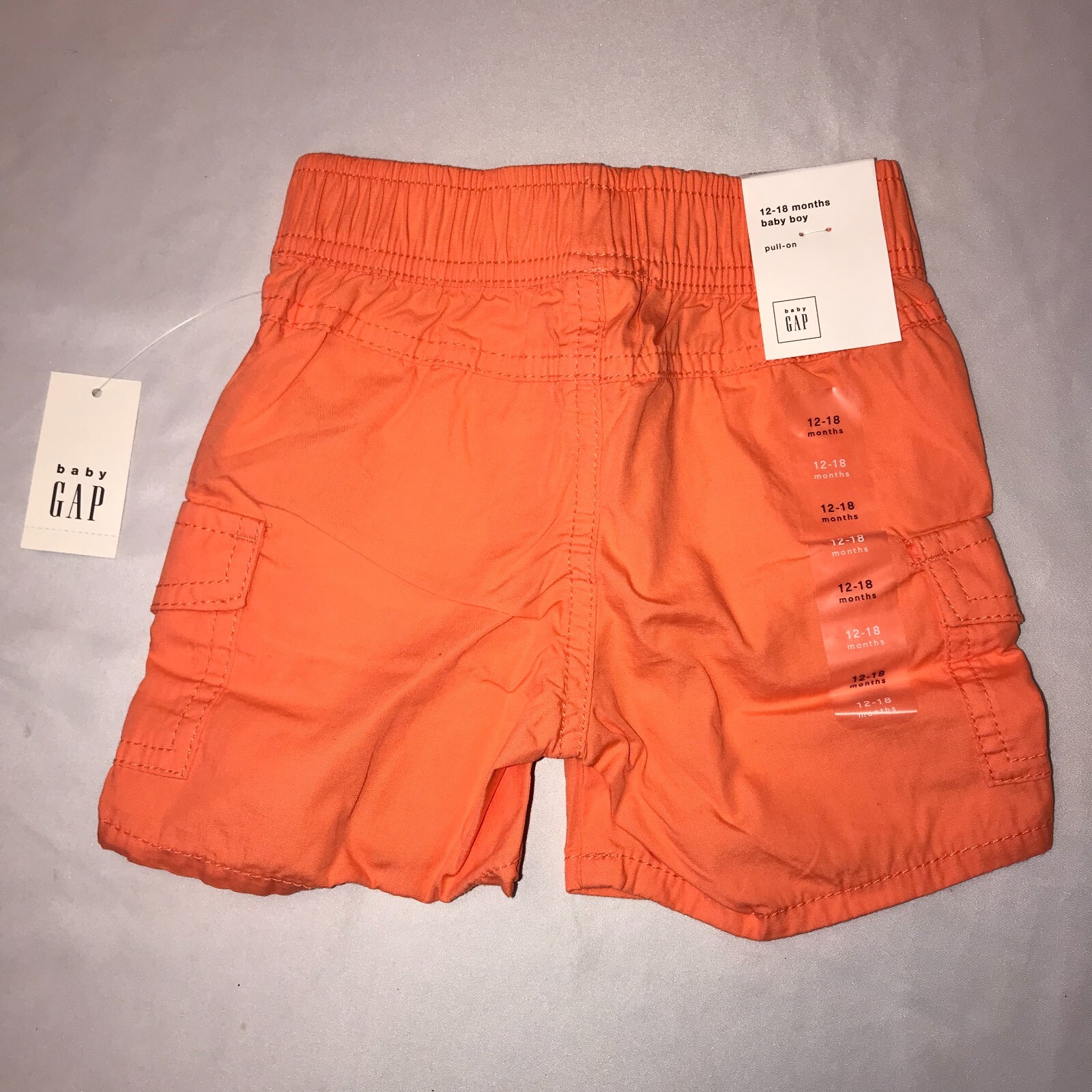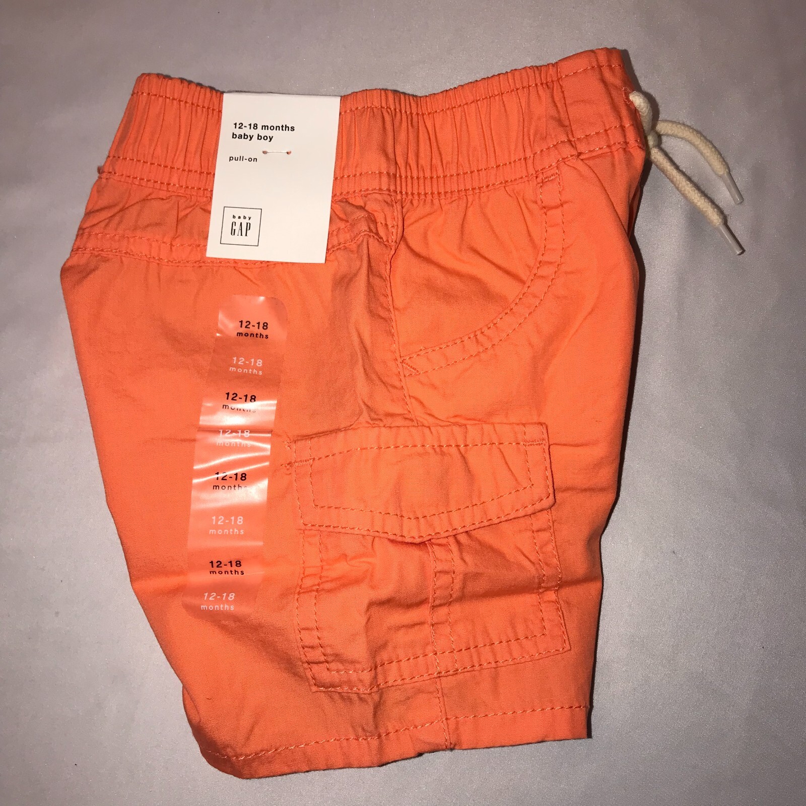 Baby Gap Orange Pull-On Cargo Shorts 12-18 Months with drawstring 230304 NEW 25