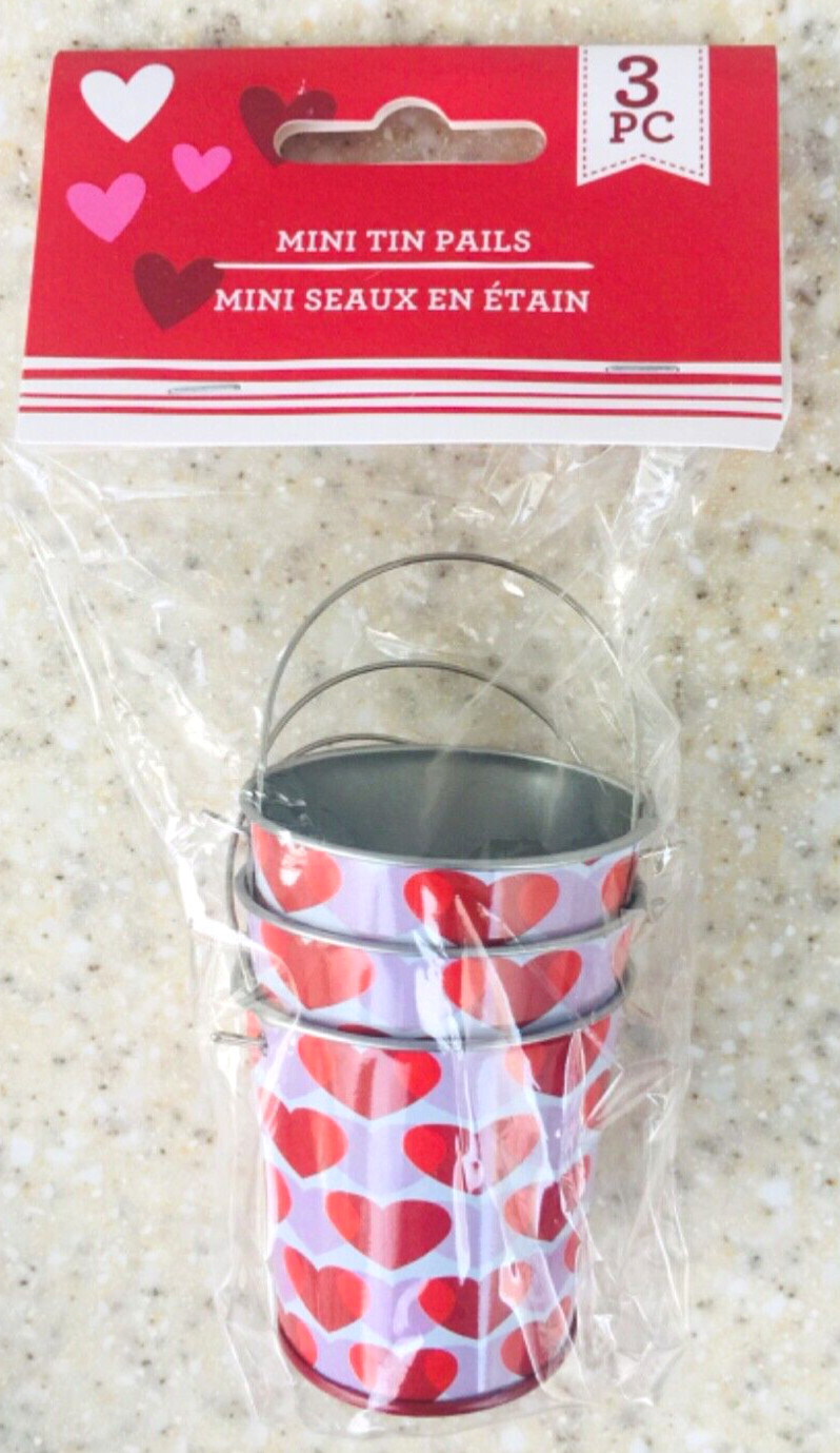 3pc VALENTINE HEARTS Mini Tin Bucket Pail LOT/SET of 3