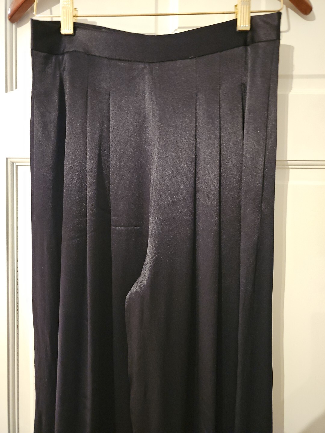 как выглядит Griffith Gray For St John Pants Sz 6 Black Satin Pleats Wide Legs Lined Zip фото